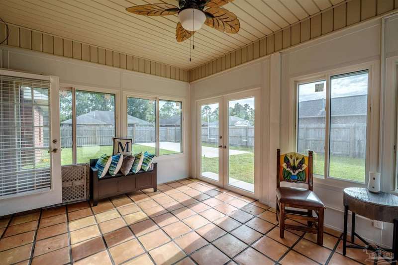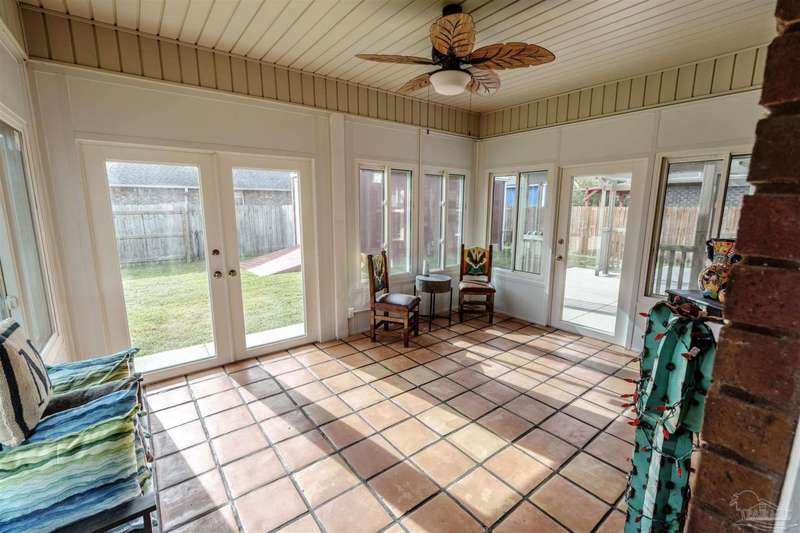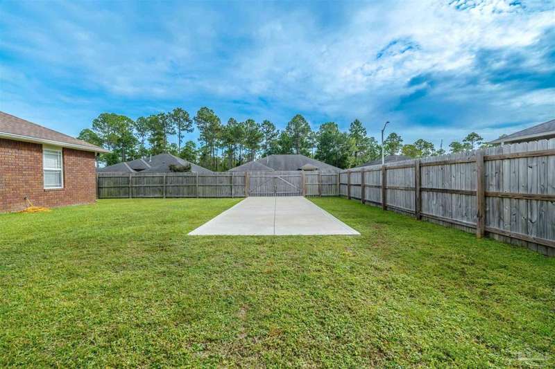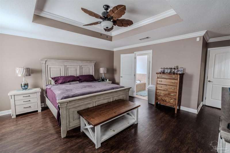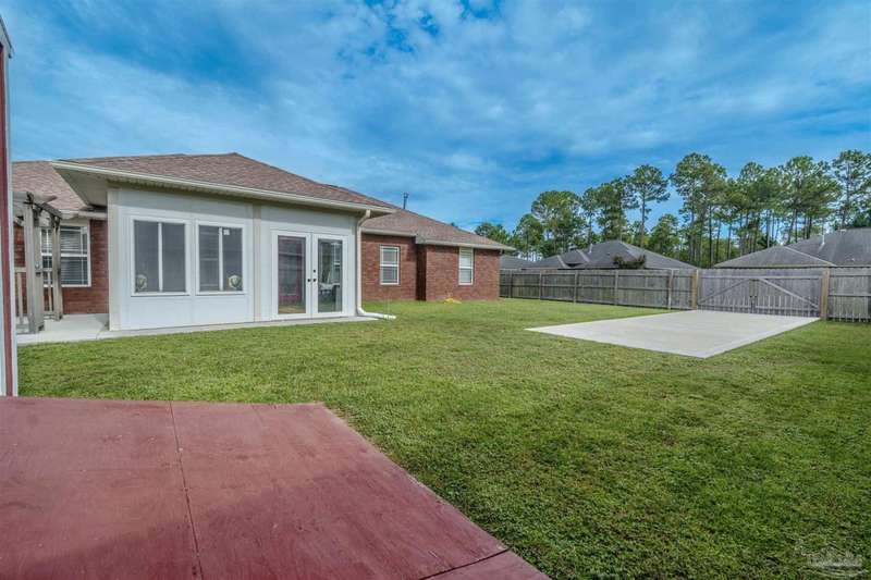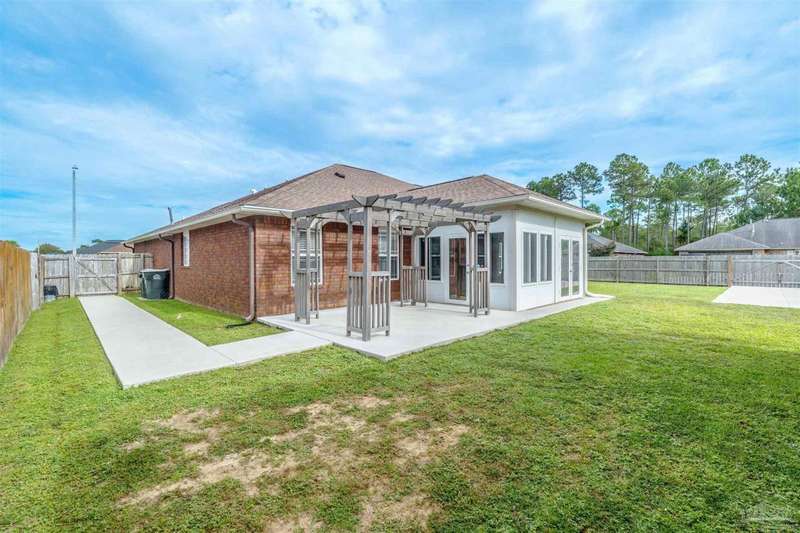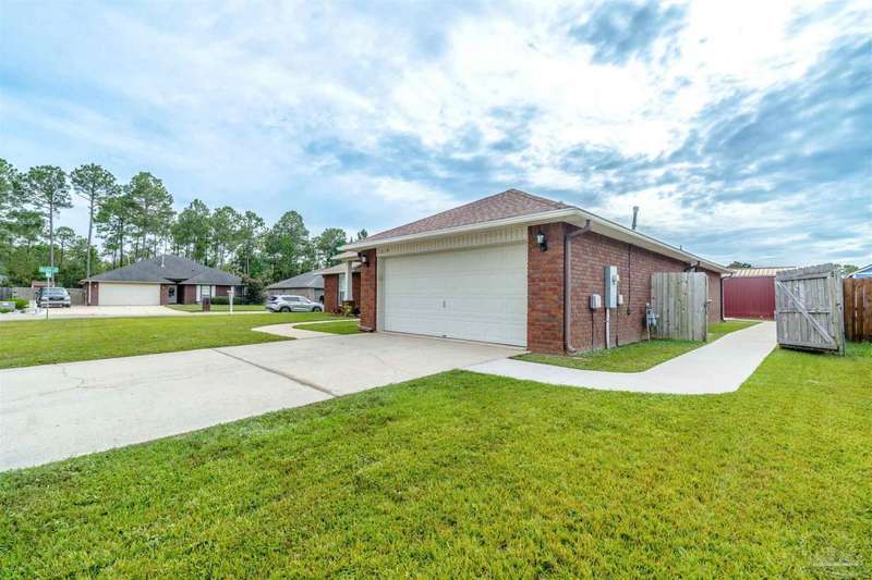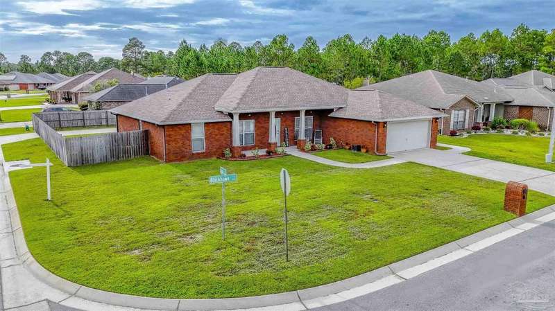 This well-maintained 4BR/2BA brick home is located on a large corner lot in the quiet community of Manchester. The landscaping is meticulous! It offers many options for entertaining family and friends inside and out! The kitchen has quartz countertops, walk-in pantry, stainless steel appliances, and a new gas stove/griddle. Also newly added insulation in garage and sunroom. Easy to maintain LVP and tile flooring. The primary suite has tray ceilings, dual quartz vanities, soaker tub, walk in shower and large his & her walk-in closet. Also included is a 75' TV mounted in the living room. Entire interior has been freshly painted, and home comes with Kevlar hurricane storm window covers. The Sunroom is bright, climate-controlled, with imported Mexican Saltillo tiles, hurricane rated windows, ceiling fan and double door exit. Backyard has a patio with pergola with sun cover, a 24x12 workshop with roll-type garage door, custom workshop benches and shelves (ready for electrical installation), a privacy fence, extended sidewalks around the home and an extended concrete RV/boat pad with double gate on fence that adds flexibility for all your adventures. Roof Nov 2020, HVAC 2020, Water Heater 2018. A move-in ready home in a prime location near beaches, Perdido Bay boat ramp, military bases, stores and entertainment! Schedule your showing today!