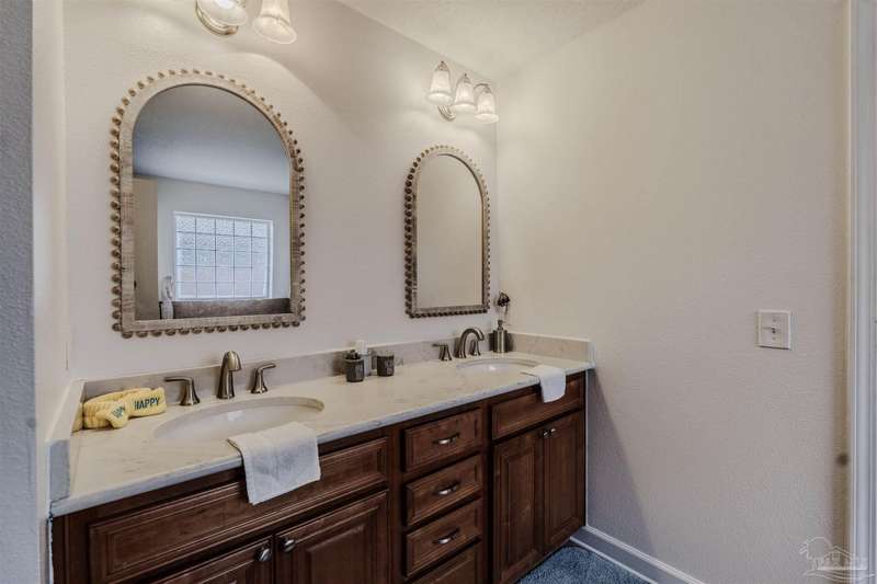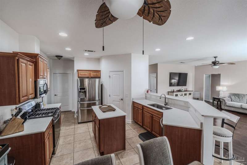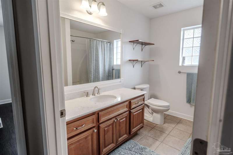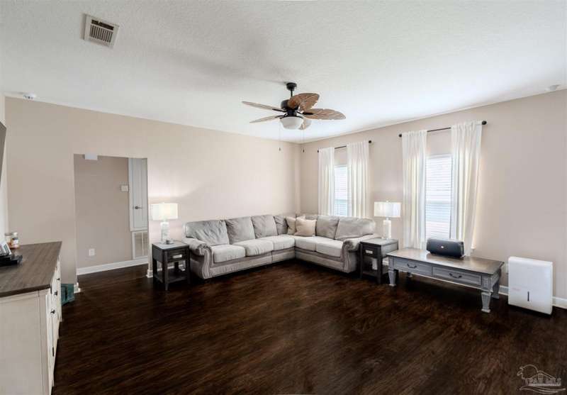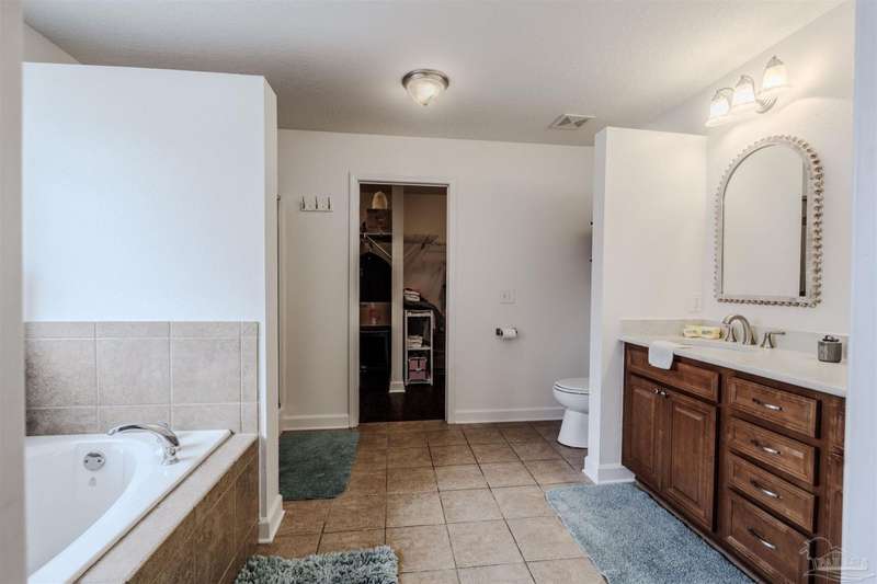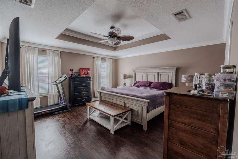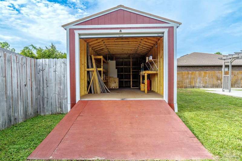 This well-maintained 4BR/2BA brick home is located on a large corner lot in the quiet community of Manchester. The landscaping is meticulous! It offers many options for entertaining family and friends inside and out! The kitchen has quartz countertops, walk-in pantry, stainless steel appliances, and a new gas stove/griddle. Also newly added insulation in garage and sunroom. Easy to maintain LVP and tile flooring. The primary suite has tray ceilings, dual quartz vanities, soaker tub, walk in shower and large his & her walk-in closet. Also included is a 75' TV mounted in the living room. Entire interior has been freshly painted, and home comes with Kevlar hurricane storm window covers. The Sunroom is bright, climate-controlled, with imported Mexican Saltillo tiles, hurricane rated windows, ceiling fan and double door exit. Backyard has a patio with pergola with sun cover, a 24x12 workshop with roll-type garage door, custom workshop benches and shelves (ready for electrical installation), a privacy fence, extended sidewalks around the home and an extended concrete RV/boat pad with double gate on fence that adds flexibility for all your adventures. Roof Nov 2020, HVAC 2020, Water Heater 2018. A move-in ready home in a prime location near beaches, Perdido Bay boat ramp, military bases, stores and entertainment! Schedule your showing today!