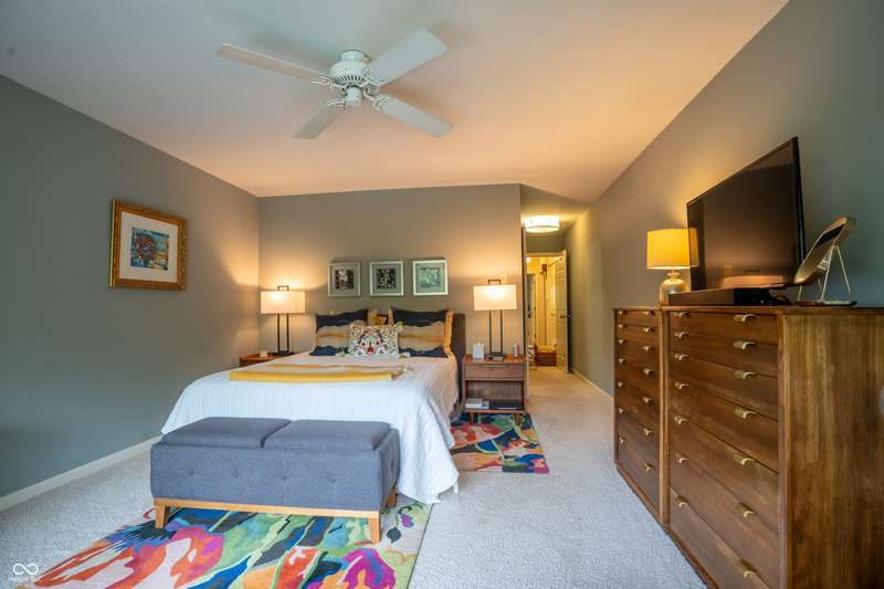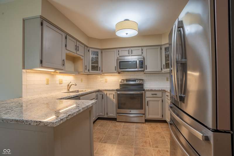 Feast your eyes on the delightful, well-maintained condo in sought-after Olde Mill! Nestled on the southeastern corner of this community, this property offers a serene setting with little to no road noise and close proximity to the clubhouse, pool, and tennis courts. The living room, a haven of tranquility and relaxation, features a fireplace that promises cozy evenings on cool Indiana nights. Gaze upon the water view, a tranquil backdrop for your everyday life. Updated kitchen is complete with shaker cabinets, backsplash, and granite countertops that offer both beauty and functionality. Primary bedroom is spacious with bay window offering tranquil water view. Ample storage throughout the home. Back patio is just steps away from a pond stocked with carp for fishing, and brings much wildlife into view. Enjoy a refreshing dip in the community pool on warm days, or simply lounge poolside with a good book. This condominium is more than just a home; it's a low-maintenance lifestyle waiting to be discovered!