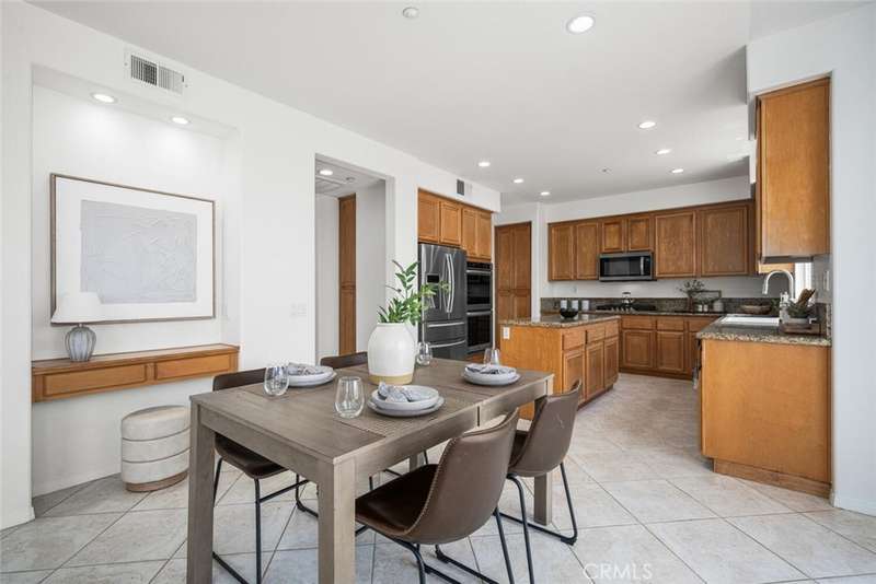 Step into this beautifully renovated five-bedroom, two-bathroom home, nestled in the desirable Alta Vista Community, where modern upgrades meet expansive living space. The open-concept floor plan is flooded with natural light, creating a warm and inviting atmosphere throughout. Enjoy the brand-new carpeting, a spacious gourmet kitchen featuring ample cabinetry, a large island, sleek countertops, and high-end stainless steel appliances. The home is equipped with energy-efficient dual-pane windows for added comfort. This layout also includes a private downstairs bedroom and bathroom, ideal for guests or as a peaceful retreat. The primary suite boasts two generous walk-in closets and a recently updated bathroom complete with Travertine floors, a double vanity, a roomy shower, and a large soaking tub. The three-car garage offers plenty of built-in storage cabinets, and the laundry room adds to the home's functionality. Outside, the large, private backyard offers the perfect space for relaxation or entertaining, with no rear neighbors ensuring privacy and scenic mountain views. Plus, it's just a short stroll to the clubhouse and pool/spa area. Don't miss your chance to make this extraordinary home yours!