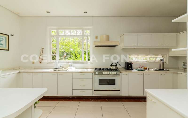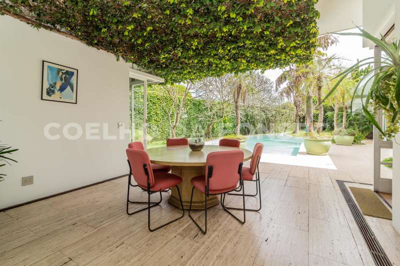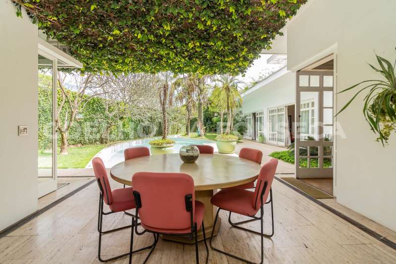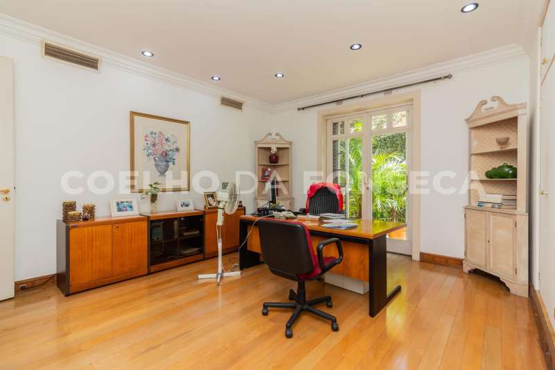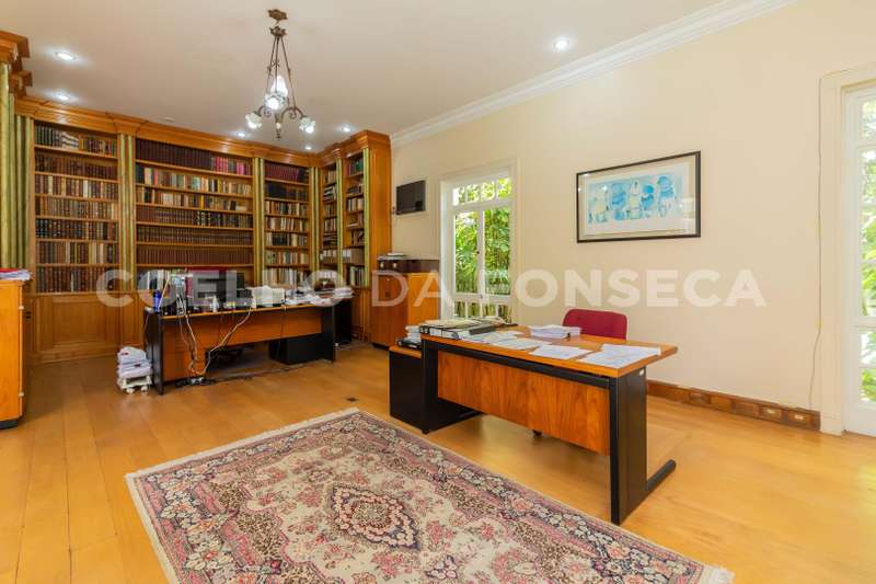 Belissima residência, com perfeita distribuição dos ambientes, dispõe de oito suites sendo que 4 suites localizada numa ala para os funcionarios. A casa possui elevador, um belo jardim de inverno, vaga atualmente para dois carros, com possibilidade para mais 5 carros na parte lateral da casa .Area externa priviligiada com lindo jardim com piscina. Localização excelente, uma das melhores ruas do Jardim Luzitânia, tranquila e com segurança. Proximo a parque Ibirapuera.