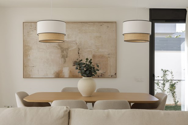 This town house is one of the Eneida Views exclusive collection of 16 semi-detached homes, thoughtfully designed to combine functionality, comfort, and aesthetics in every corner. The property features four bedrooms, three bathrooms, a private pool, a garden of over 270 m², and two parking spaces, as well as a lovely rooftop solarium—perfect to enjoy the stunning sunsets over Puig de Ros. The equipment includes an aerothermal system, the efficient and sustainable technology that uses energy from the air to heat water through a heat pump. Large windows allow for excellent natural light, while double glazing ensures optimal thermal and acoustic insulation. Various fully exterior layouts are available to suit the buyer's needs. All of this is backed by ASEFA Insurance, providing peace of mind with the guarantee of a well-established, publicly traded company. Eneida Views offers you a secure investment and the chance to enjoy a modern home tailored to your lifestyle. Contact us