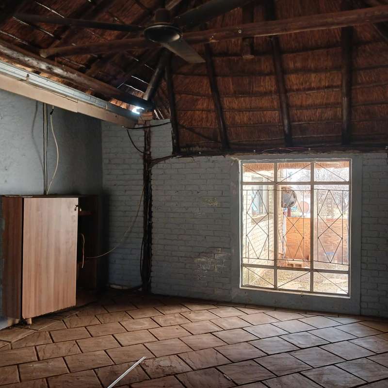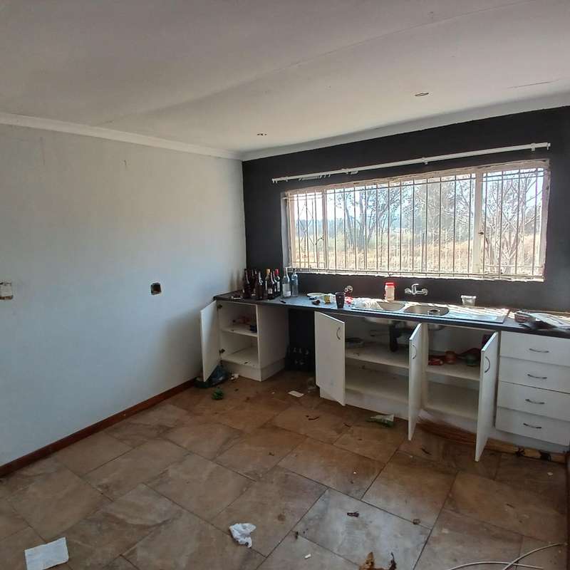 Main House: 3 bedrooms with built-in cupboards, 2 bathrooms, and an open-plan lounge and kitchen (requires finishing touches).