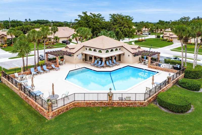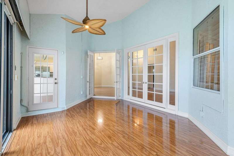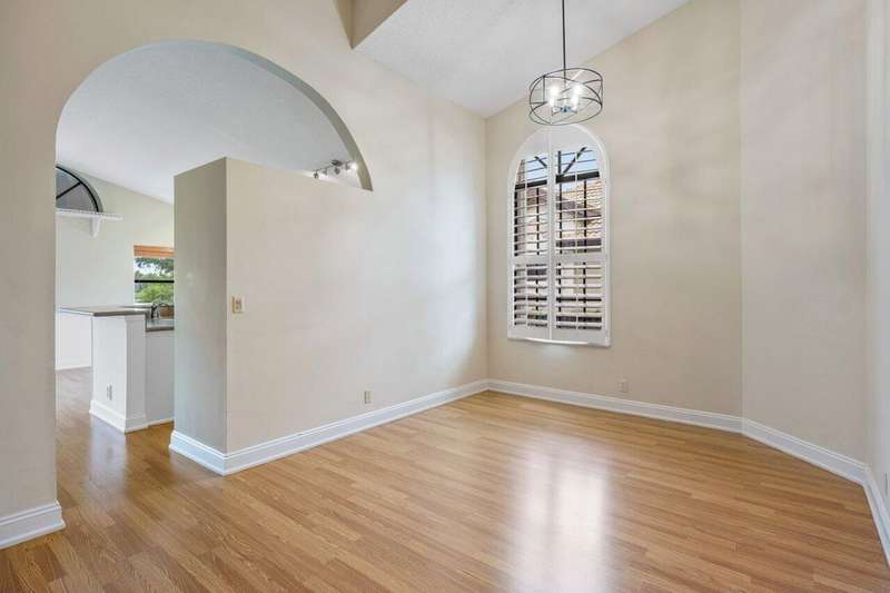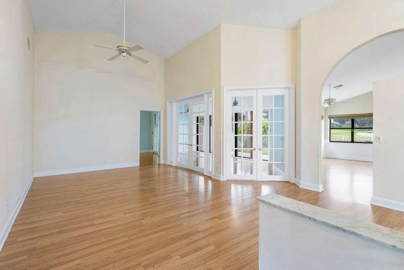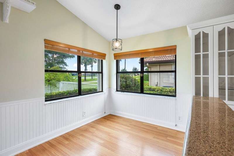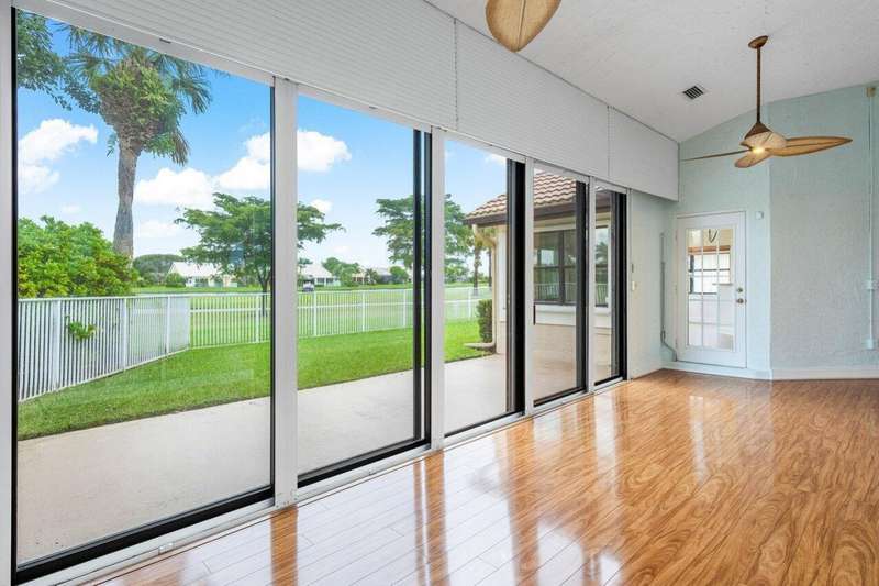 Welcome to Aberdeen Country Club, the epitome of Luxury Living. This prime 3 bed/2 bath well-maintained villa located on hole-6 boasts vaulted ceilings, engineered hardwood floors, newer Bosch appliances, & custom plantation shutters. The enclosed lanai expands the interior living space, seamlessly blending indoors with the outdoors. An awning-covered patio provides shade while taking in serene lake and golf course views from a fenced-in yard. This home features many enhancements: updated garage floor, new AC UV light & pump, new roof 2022, master bath renovated in 2018, guest bath updated in 2017, & central vac. Aberdeen Country Club offers resort-style living with Golf, Tennis, & Social Memberships available as well as bar/restaurants, pro-shops, and spa-like pools with towel service.