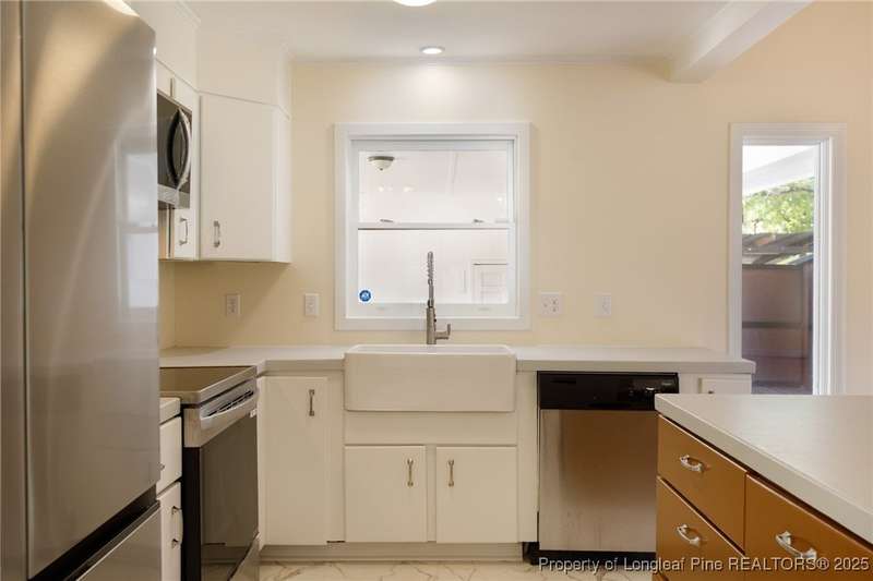 Stunning mid-century-style home with some modern upgrades - Step into this beautiful Mid-Century Modern gem that blends classic design with contemporary living. Located on over a quarter acre lot, this spacious home is truly an entertainer's dream. Of course, the heart of the home is the kitchen which features a large island (with pop-up charging station), new appliances (refrigerator, oven, microwave), and a separate area with additional cabinetry and storage - perfect for meal prep or serving a buffet dinner. This kitchen will inspire your inner chef. Rich hardwood floors throughout create a warm and inviting atmosphere, while tons of natural light flood the living spaces through large windows, enhancing the home's open, airy feel. The living room and dining areas seamlessly flow into the outdoor patio and deck, perfect for enjoying your morning coffee or hosting gatherings while overlooking the mature landscaping. The Owner's suite is a peaceful retreat with ample space, and the two additional bedrooms are nicely sized, offering versatility for guests, home office, or hobbies. Venture outdoors to enjoy the mature trees and shrubs! The deck and patio are ideal for relaxing, hanging out with family & friends. Additional amenities include a double carport with storage/utility closets and a grill hutch for those who love to cook and entertain outside. This home offers the perfect balance of modern upgrades and classic Mid-Century charm! Don't miss out on the opportunity to make this unique home yours! Heat Pump 2020 Water Heater 2025 Photos have virtual staging First Bedroom was last used as Open Office and doors were removed Whole-house inspection and quote for repairs available Additional Lot Available for Purchase - 1521 Maggie St - approx. .34 acre