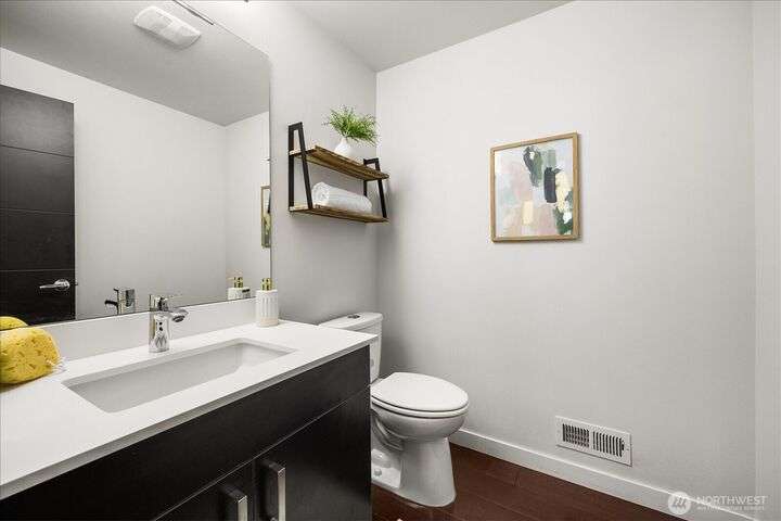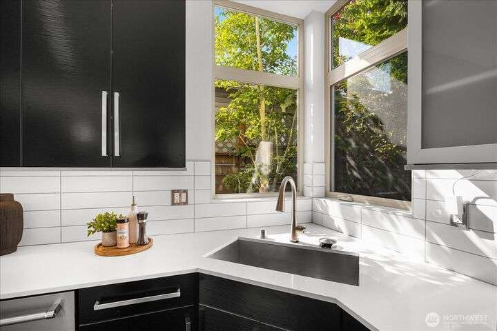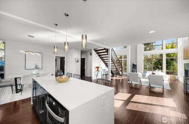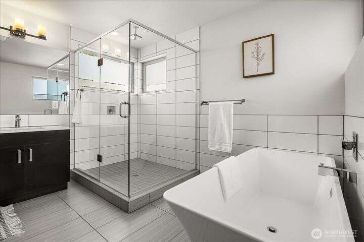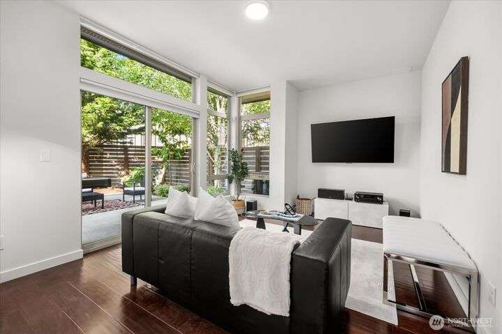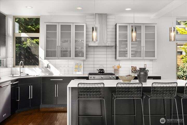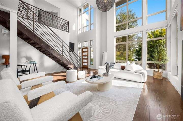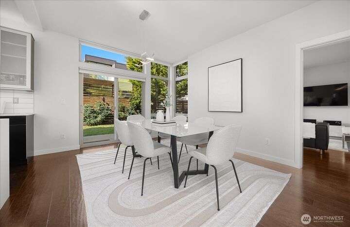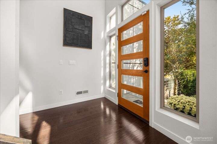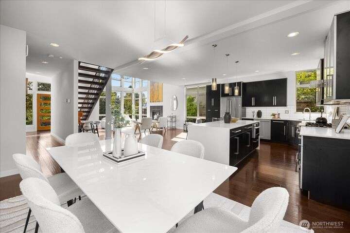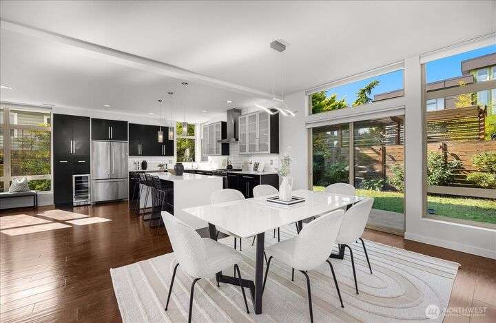 This one is truly better than new! Modern & stylish with smart home technology throughout. Feel the luxury as you walk into the two-story entry & living space with floor to ceiling windows that welcome light into the entertaining spaces. Continue through the chefs kitchen to your outside oasis complete with lighting & audio system, all included with the home. Primary 'escape' suite will wow you! Quality upgrades: New PVC roof (30yr warranty), tankless H2O, Philips Hue lighting & Lutron switches. Every detail of this home has been addressed, inside & out so you can start exploring this classic North Seattle neighborhood - Greenwood. Minutes from your door: QFC (Art's Food Ctr), Miss Pho, Carkeek Park & more. Incredible Seattle Lifestyle!