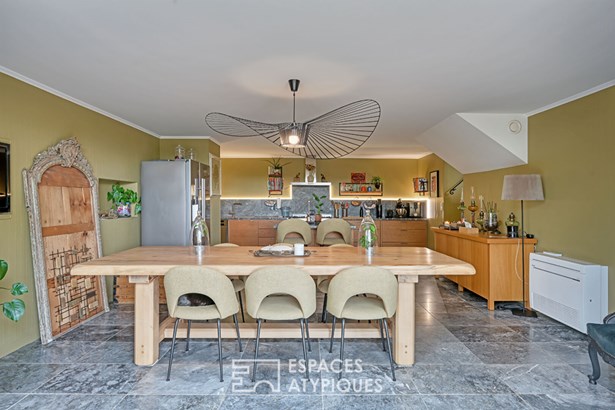 Thirty minutes from Uzes, in the Uzes Orange area, nestled on one of the hills surrounding the village, is a 165sqm house that perfectly combines a refined and intimate renovation with a comfortable and friendly atmosphere.