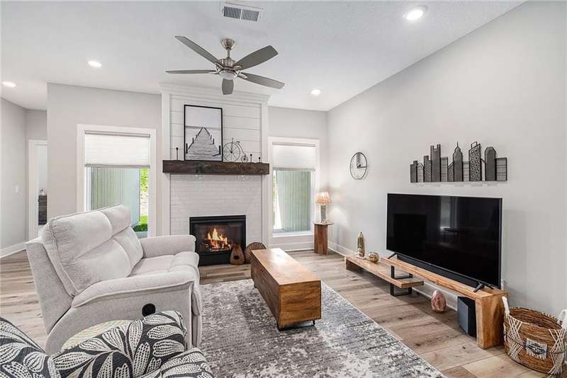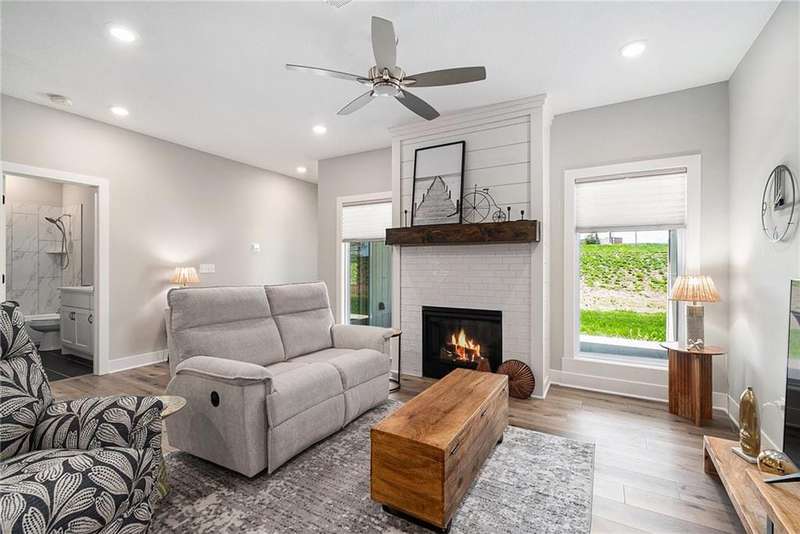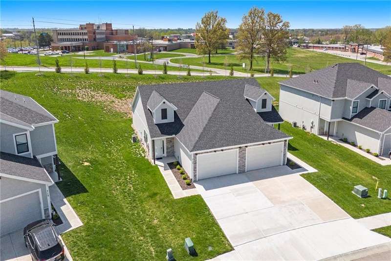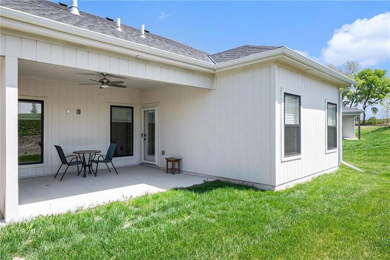 BETTER THAN NEW! Recent Upgrades include: light fixtures & ceiling fans, plumbing fixtures, handles, pulls & hinges throughout, Andersen full view storm doors with removable screens front & back, Bali pleated window shades, ODL enclosed blinds on patio door, Andersen full view storm doors - removable screen front & back, and a pantry cabinet in the kitchen!Built just 3 years ago, this beautifully designed single-level townhome offers low-maintenance luxury living in a premier community. Ideally located next to Smithville High School and only one minute from downtown, youll also enjoy close proximity to Smithville Lake, walking trails, and a variety of local amenities. Featuring 2 spacious bedrooms and 2 full bathrooms, this home is thoughtfully designed for comfort and convenience. The open-concept layout includes luxury vinyl plank flooring throughout the main living areas and safe room, a cozy fireplace in the living room, and a functional drop zone off the garage. The kitchen showcases custom cabinetry, stainless steel appliances, an eat-at island, and modern finishes that will impress. The primary suite boasts a large walk-in shower, double vanity, and ample storage, while the secondary bedroom and full bathroom provide ideal space for guests or family. Step outside to a covered patio with a ceiling fan-perfect for relaxing or entertaining year-round!