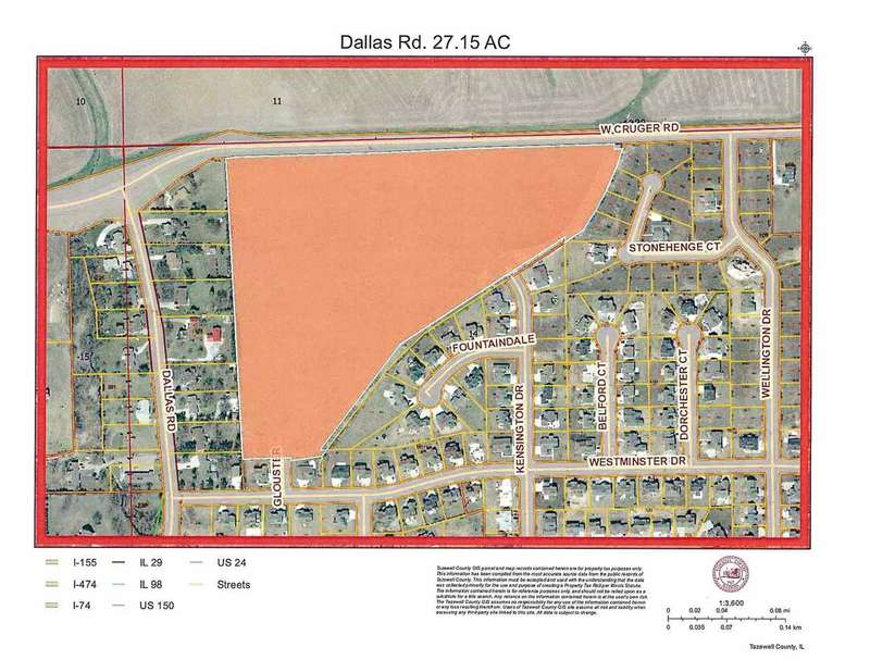 27.15 acres - perfect site for subdivision development - utilities at lot line; mostly tillable, gently rolling farm ground; Triangular in shape - see aerial plat in photos