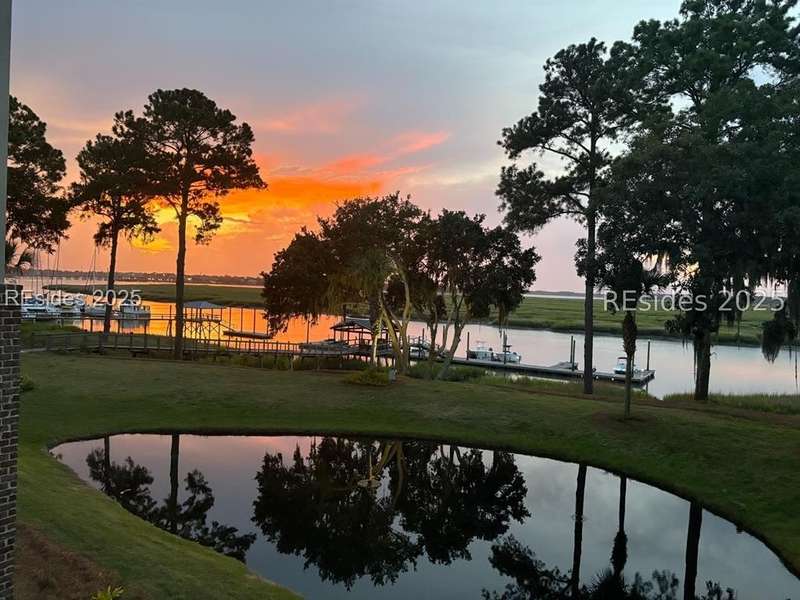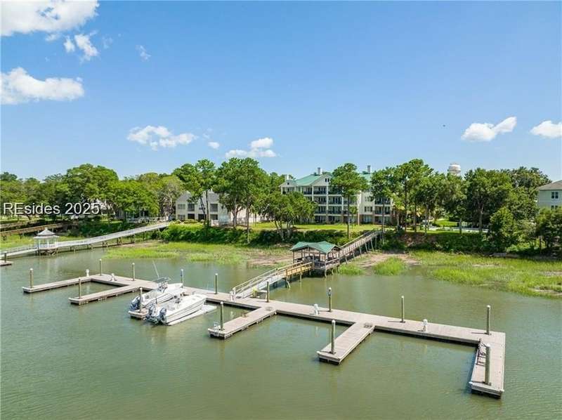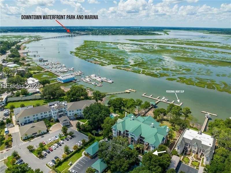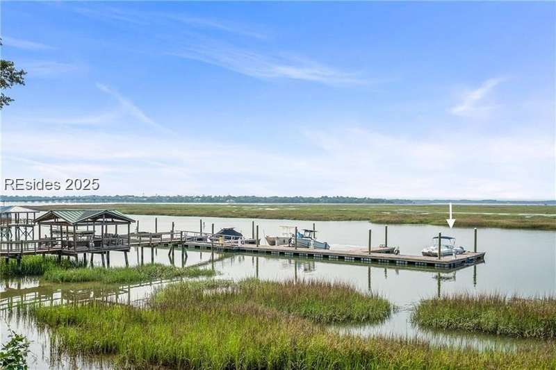 Welcome to luxury waterfront living at Hamilton Village - only a short boat ride to dinner in downtown Beaufort! This beautifully, fully renovated 4-bedroom, 3-bath second-floor end unit offers sweeping views of Factory Creek, the Intracoastal Waterway, Historic Downtown Beaufort, and the iconic Woods Memorial Bridge. Located in an exclusive 16-unit community, residents enjoy access to a waterfront saltwater swimming pool, fully renovated deepwater marina and deeded boat slip, private dock, gazebo, and lushly landscaped grounds - all just minutes from shops and restaurants. Inside, an open-concept great room with fireplace flows seamlessly to a covered porch with panoramic water views. The spacious primary suite features more stunning views, a spa-like bath, and a large walk-in closet. Thoughtfully designed with upscale finishes, designer lighting, and elegant touches throughout, the home includes three additional guest bedrooms and a carport with dedicated storage. This one level home is a short walk to local restaurants or stroll across the swing bridge into the heart of Beaufort!