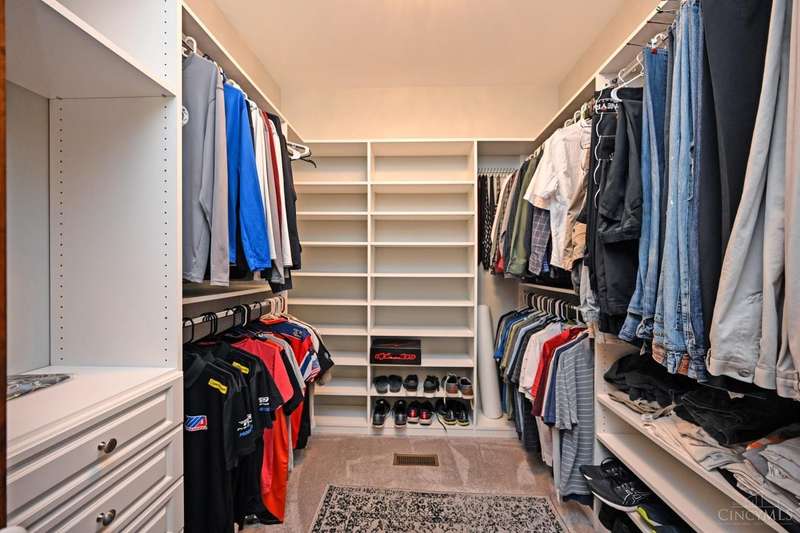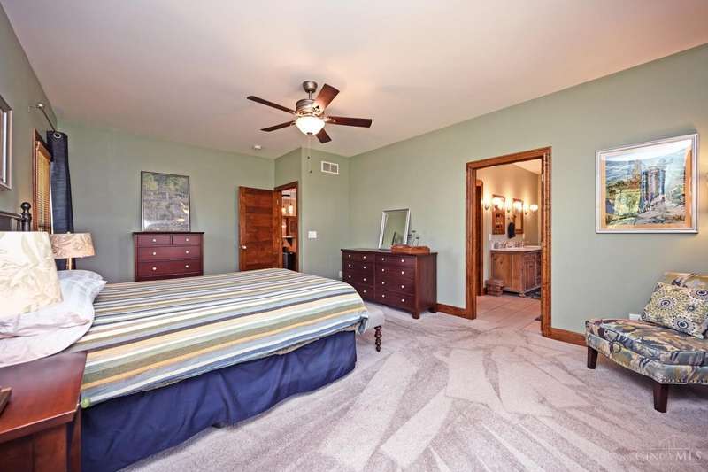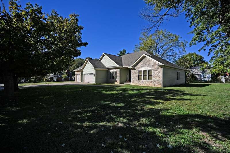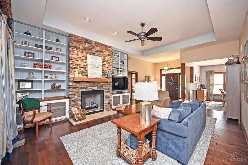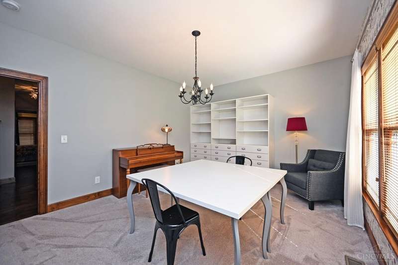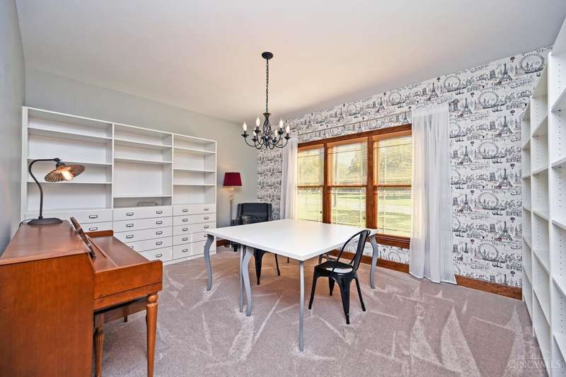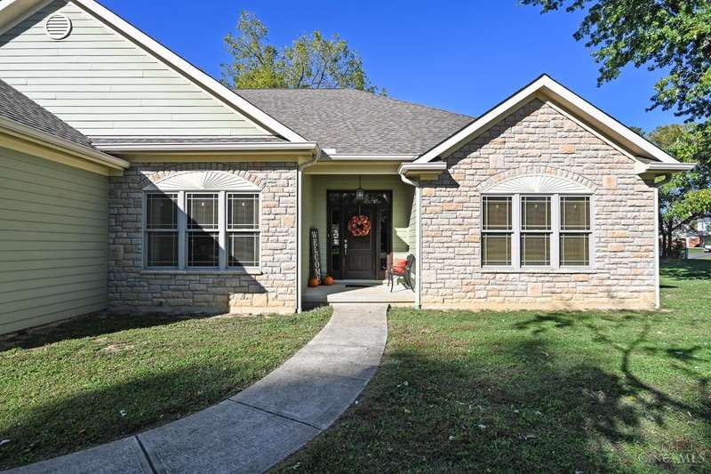 WOW! Every detail has been thoughtfully designed in this stunning 10 year old custom built 2300 sq ft ranch, nestled on over an acre in desirable Anderson Twp. This home offers 3 spacious bedrooms PLUS a large office, perfect for working from home or crafting. The exterior features durable, low maintenance Hardie Board siding, & the interior boasts solid wood doors adorned with porcelain & crystal doorknobs, adding a touch of timeless charm. Energy efficiency is a standout here with insulated walls & ceilings and a geothermal system that keeps utility costs low. The lower level features high ceilings, a rough-in for an additional bathroom, & a walk out to the backyard, making it ideal for finishing as additional living or entertaining space. You'll love the built in shelving & storage in the great room & office/craft room, maximizing both form & function. No HOA restrictions & a long list of thoughtful upgrades make this home an exceptional value.