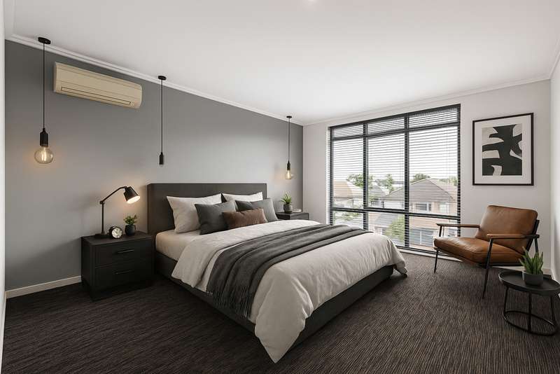 This modern home boasts three generous bedrooms and two well-appointed bathrooms, thoughtfully spread across two inviting levels. As you step inside, naturally lit interiors and contemporary finishes create a warm, minimalist appeal designed for easy living.