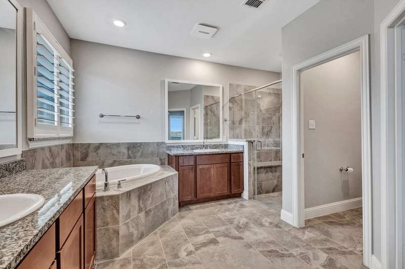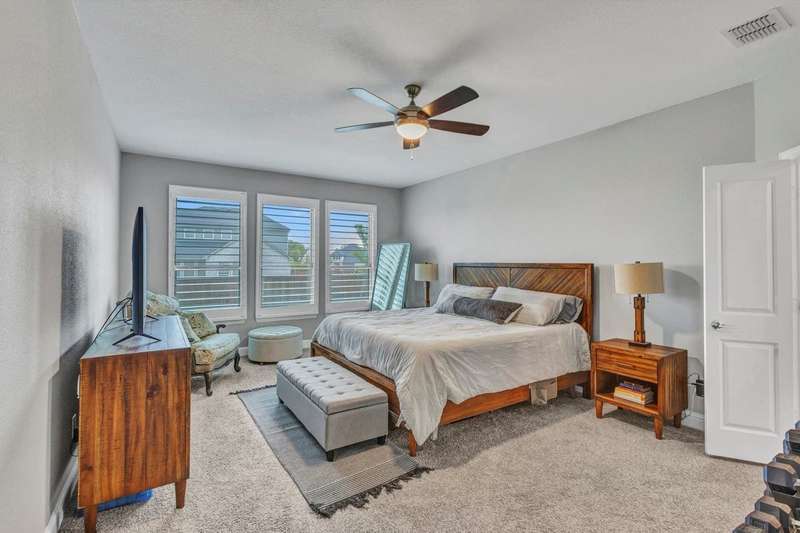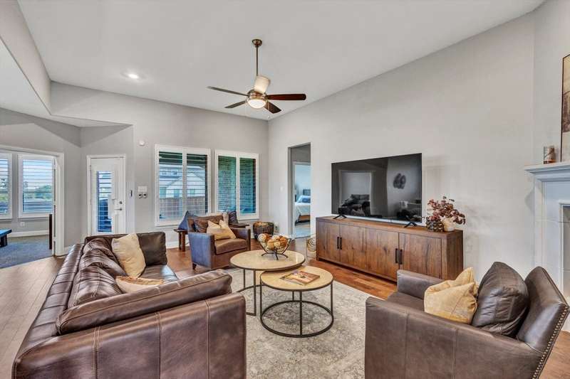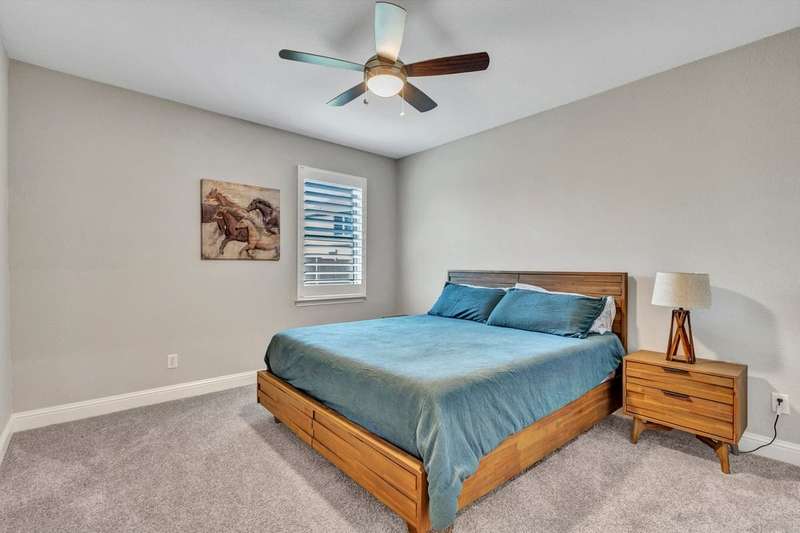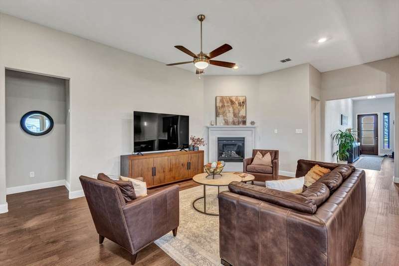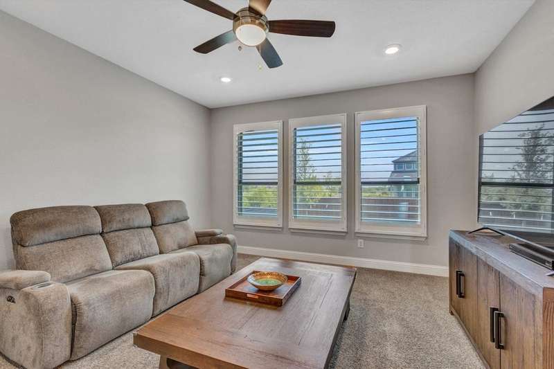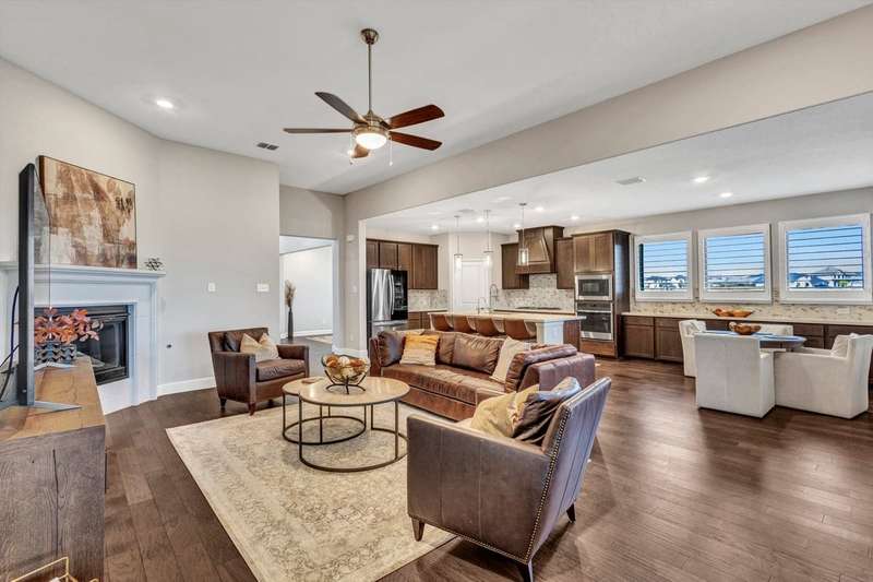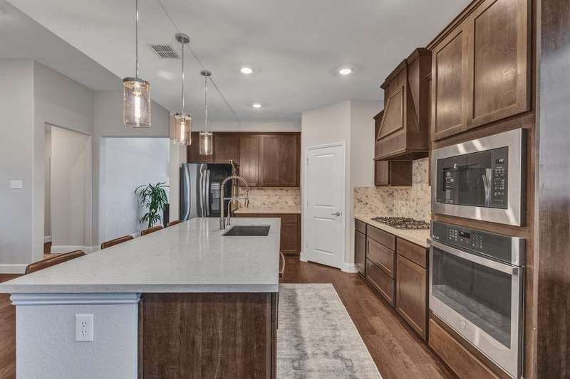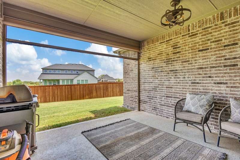 Welcome to this beautiful single-story home that provides generous space for the whole family. This home has been thoughtfully designed and upgraded with both comfort and convenience in mind. Inside, youll find premium plantation shutters, granite vanities in all the baths, a gourmet kitchen with quartz countertops and a custom vent hood, touch-free faucet, and fresh interior paint throughout. The extended owners retreat offers a spa-like bath with soaking tub, frameless glass shower, and an expanded walk-in closet. Efficiency and quality upgrades include a high-efficiency water softener with whole-house catalytic carbon filtration and a top-of-the-line reverse osmosis system. Step outside to a covered patio with epoxy flooring, dual ceiling fans, a dedicated gas hook-up, and a motorized retractable screen, perfect for entertaining. The three-car garage comes equipped with a Level 2 EV charger, custom shelving, and a built-in work desk. Appliances, including the refrigerator and washer, and dryer convey, making this home truly move-in ready.