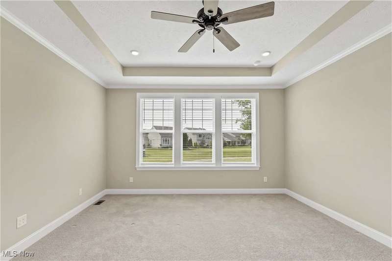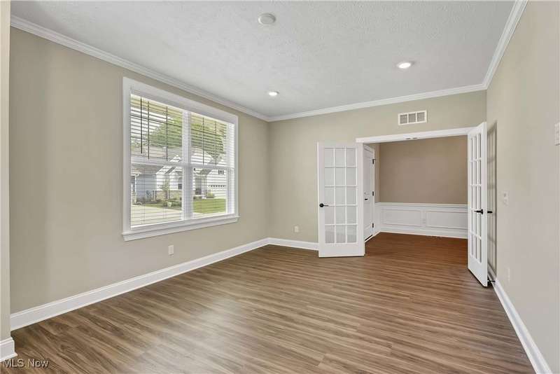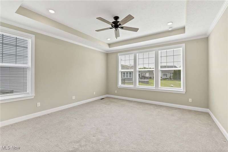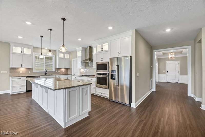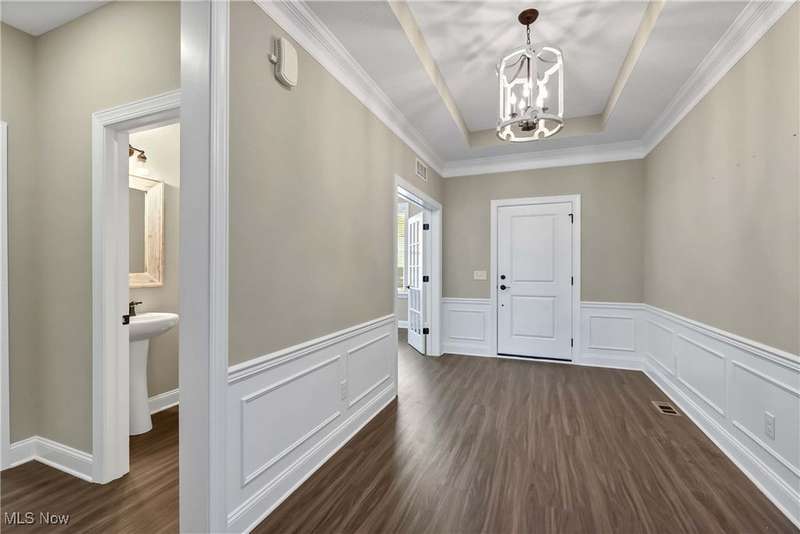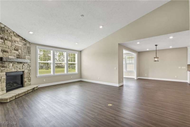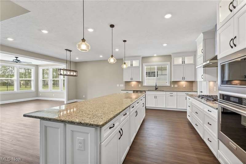 Amazing one floor living at its best! This 2,588sq ft residence was completed in 2024 and includes an unbelievable amount of builder's upgrades and features. The very large 10x20ft foyer has a trey ceiling with designer light fixture, crown molding and detailed wainscoting. Adjoining is an office/flex room with French doors, crown molding and recessed lighting. An additional separate hall directly off foyer includes a powder room, and guest closet, which leads to a complete guest suite with crown molding and full bath. The oversized kitchen features a 10ft breakfast bar with 3 pendent lights, custom cabinetry with 54in upper cabinets with lighted glass tops, beautiful granite countertops, porcelain tile backsplash, and all top-of-the-line KitchenAid appliances including 5 burner gas stovetop and convection wall oven and microwave. Additional features include: a walk-in pantry and 16 recessed lights throughout the open living area. The dining area/cafe is very generous in size and is flanked by a light & bright windowed14x12 sunroom. The vaulted Great Room features a phenomenal stone gas fireplace with 7ft raised stone step. The master bedroom suite features a trey ceiling with recessed lighting and an enormous master bath with two huge quartz toped vanities, a unique oval soaking tub, a ceramic glass walled shower, a generous sized water closet, linen closet and 12ft walk-in closet. From the garage and foyer is a spacious hallway with built-in cubbies and storage leading to a large laundry room with built-in cabinetry and utility sink. A wrought iron surround enhancing the staircase to the lower level which includes a 9' ceiling height and rough in for a future bathroom. Additional features include: custom window blinds throughout, oversized wood moldings, paneled interior doors, designer light fixtures and fans throughout and upgraded LVT flooring. This home is situated on a protected area of the Spring Valley Golf Crouse.