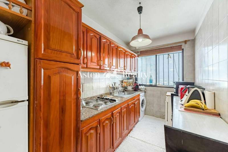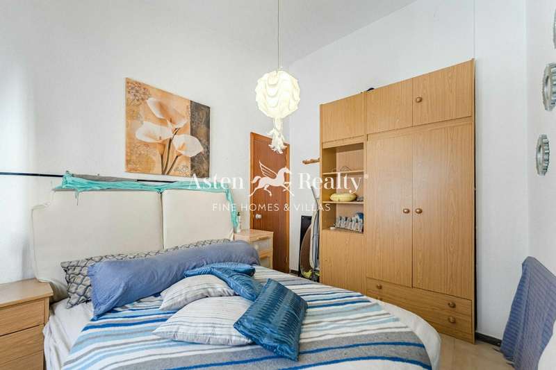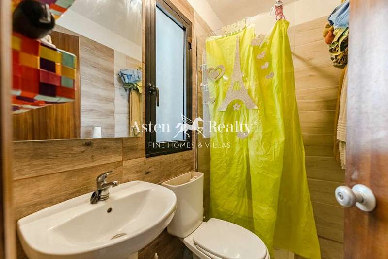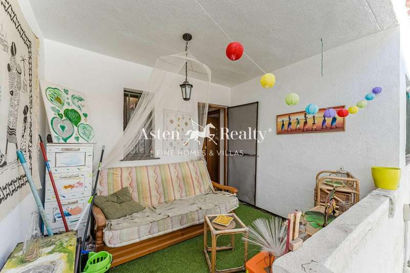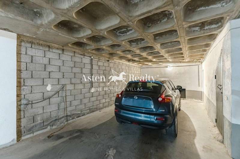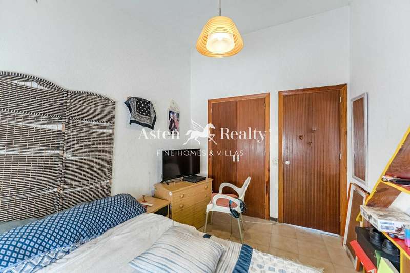 In total, the property offers 4 bedrooms, 2 full bathrooms, 3 terraces, a garage, a storage room, and a communal pool (currently under repair). The property is sold unfurnished, with an equipped kitchen, and requires minor renovation.