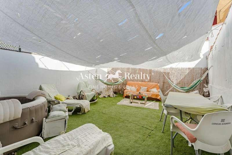 - Upon entering the ground floor, we find a front terrace of 28 m2, providing access to the property where a spacious living/dining room, a separate kitchen, a full bathroom, and a small hallway lead us to a large two-level backyard, a beautiful outdoor space to decorate to your taste.