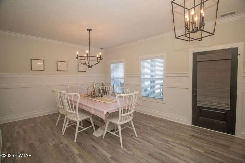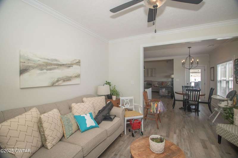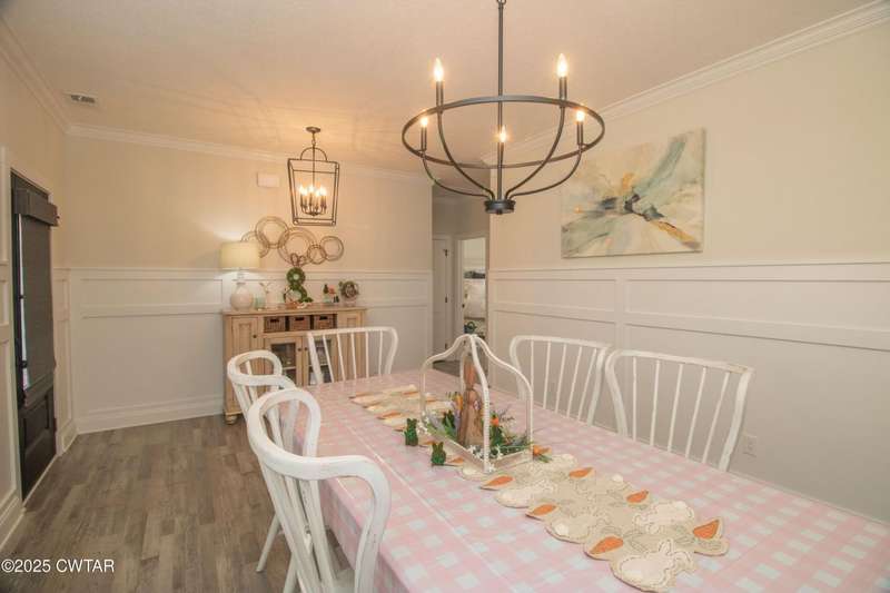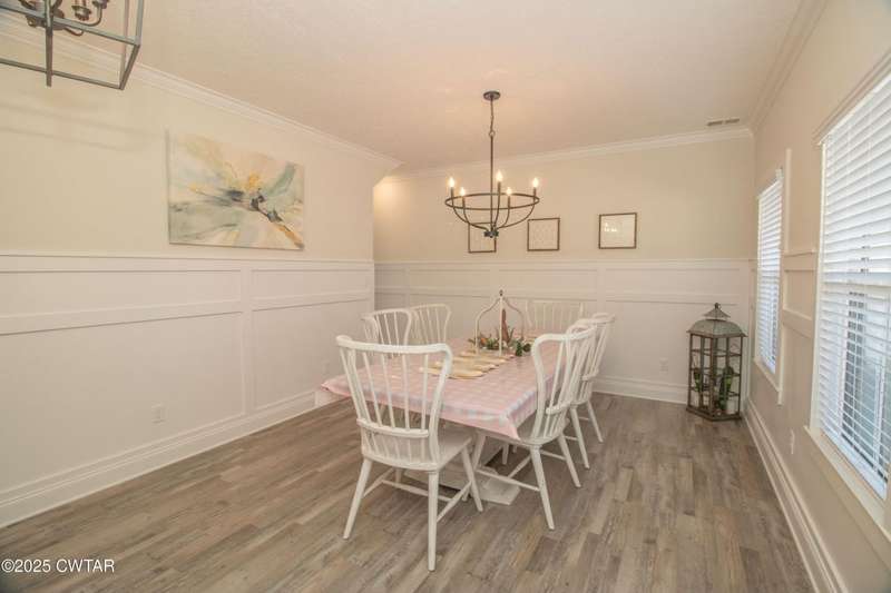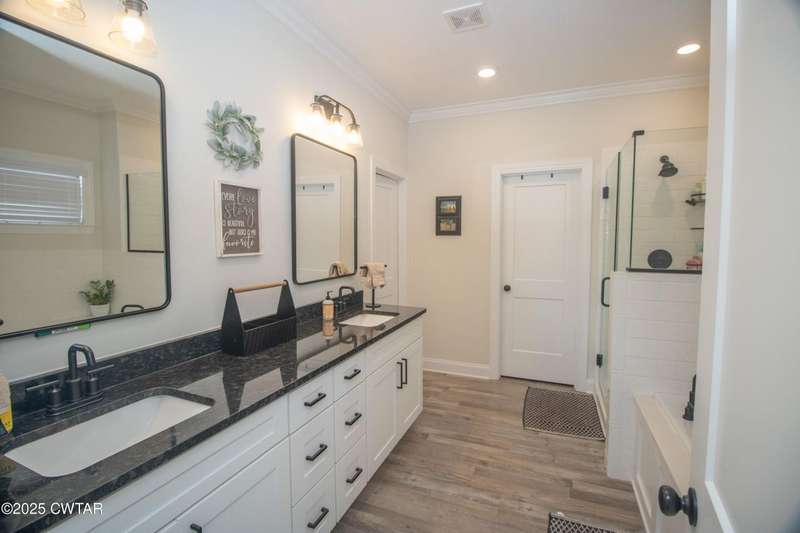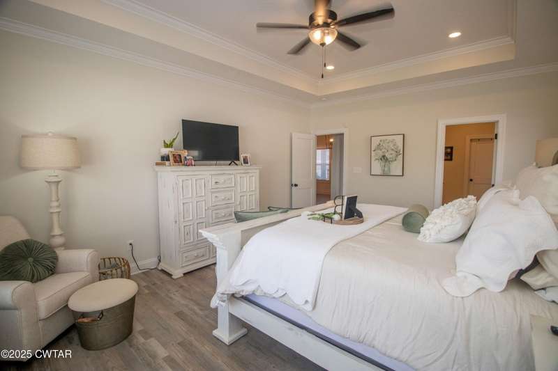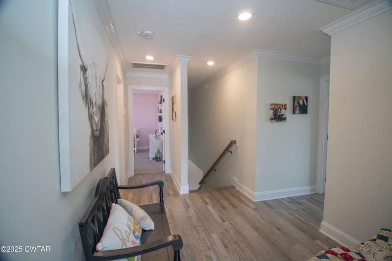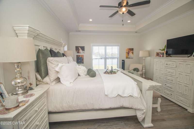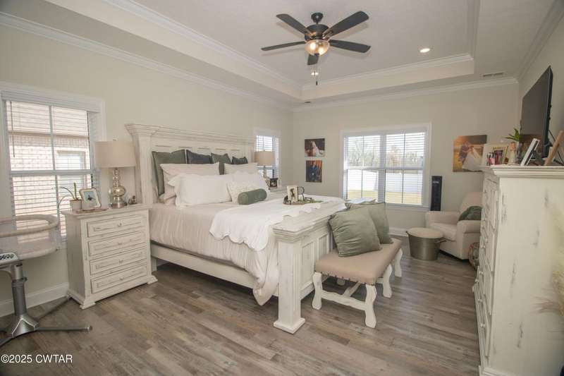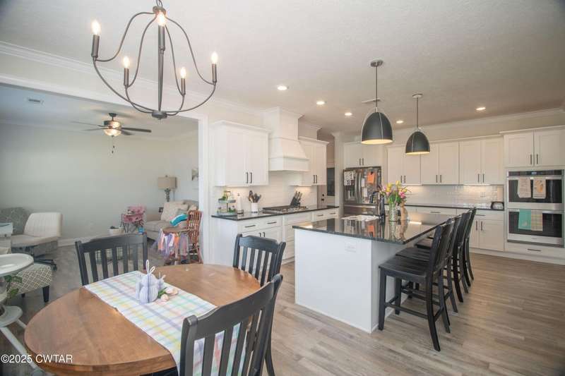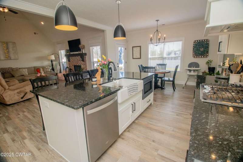Medina Schools! Providence Subdivision (only 0.6 miles from South Gibson County Middle School). Best curb appeal in the neighborhood. This four-bedroom, two-and-a-half-bathroom home features the following amenities: an office/hearth room, a three-car garage, a covered front porch, a covered back patio, a spacious backyard, exterior lighting in the eaves, double ovens with a gas cooktop, a microwave in an island with a vent hood over the cooktop and double oven, a white cast iron farm sink in the kitchen, a half-brick fireplace, black plumbing fixtures, a frameless shower door/glass in the master tile shower, a soaking tub, double vanity, and a large Master closet. White cabinets throughout with steel gray granite tops, LVP flooring throughout the downstairs and in the upstairs landing and bathroom, hardwood tread stairs, carpet with an upgraded pad in the upstairs bedrooms, and a tankless water heater. Walk-out and pull-down attic space. This floor plan is suitable for a growing family. One family purchased this same floor plan and converted the office into the fifth bedroom. It has custom blinds, a vinyl fence, and a built-in storm shelter. The laundry room is closed from exterior doors. Bar stools, mirrors, and the refrigerator will remain with the property.