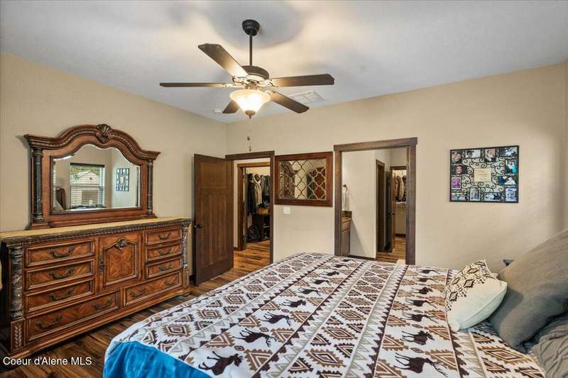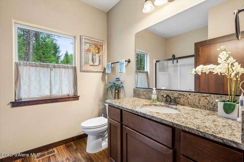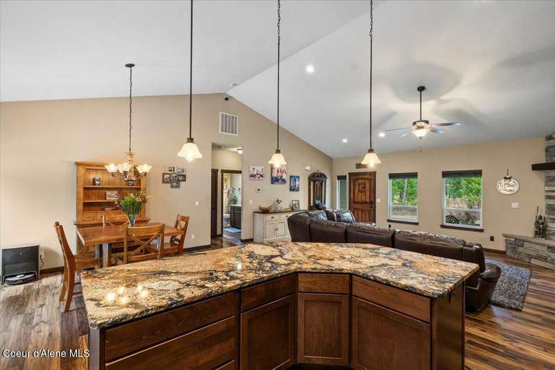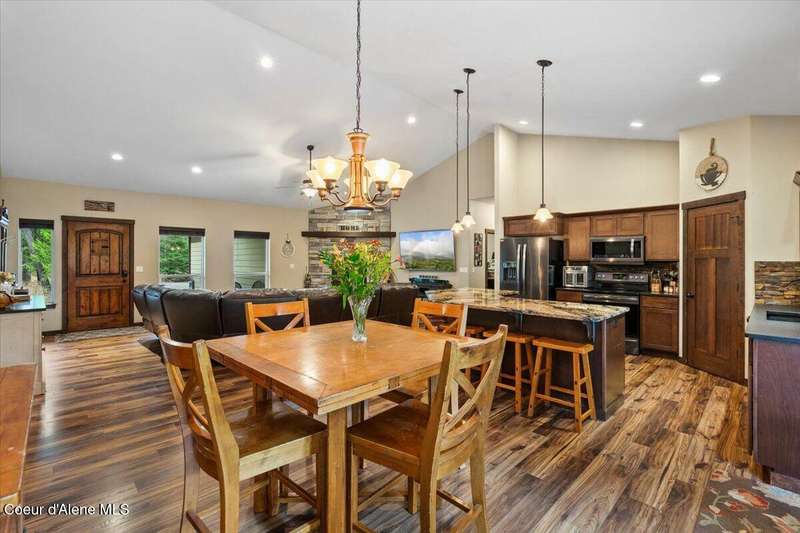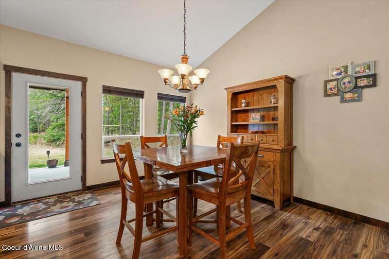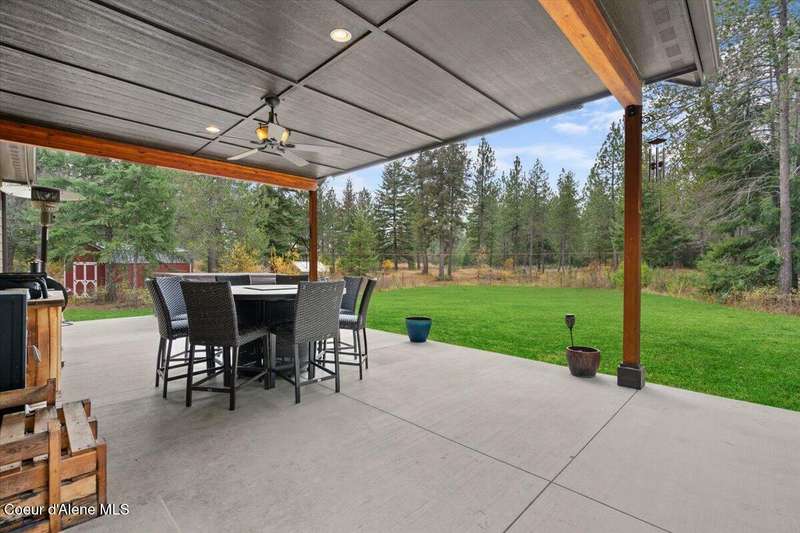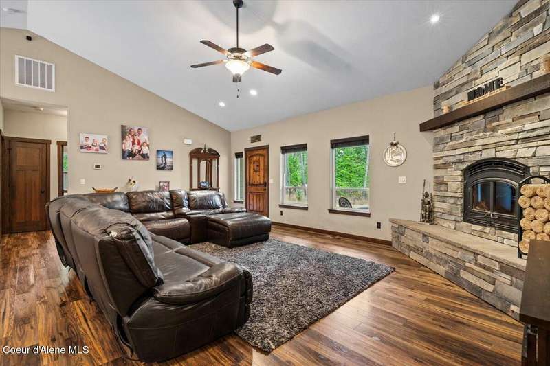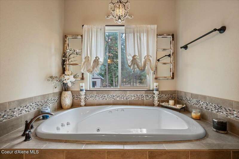 Nestled on 9.95 picturesque wooded acres in Rathdrum, this 2,702 sq. ft. custom built home offers 5 bedrooms, 3 bathrooms, a 3-car garage, and room for your dream shop. Designed for comfort and style, the home features vaulted ceilings, a wood fireplace with rock accents, open gourmet kitchen with solid granite countertops and a walk-in pantry, and a luxurious master suite with a walk-in closet, tiled shower, and jetted tub. Outside, enjoy a gun range, covered patio, firepit, garden, and chicken coup, all while surrounded by incredible wildlife. Located just minutes north of Hayden in the Lakeland School District, this property with its serene country living offers plenty of space to store your toys, entertain or relax all while enjoying the peace and privacy.