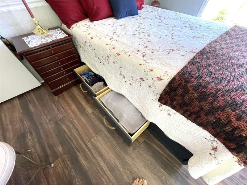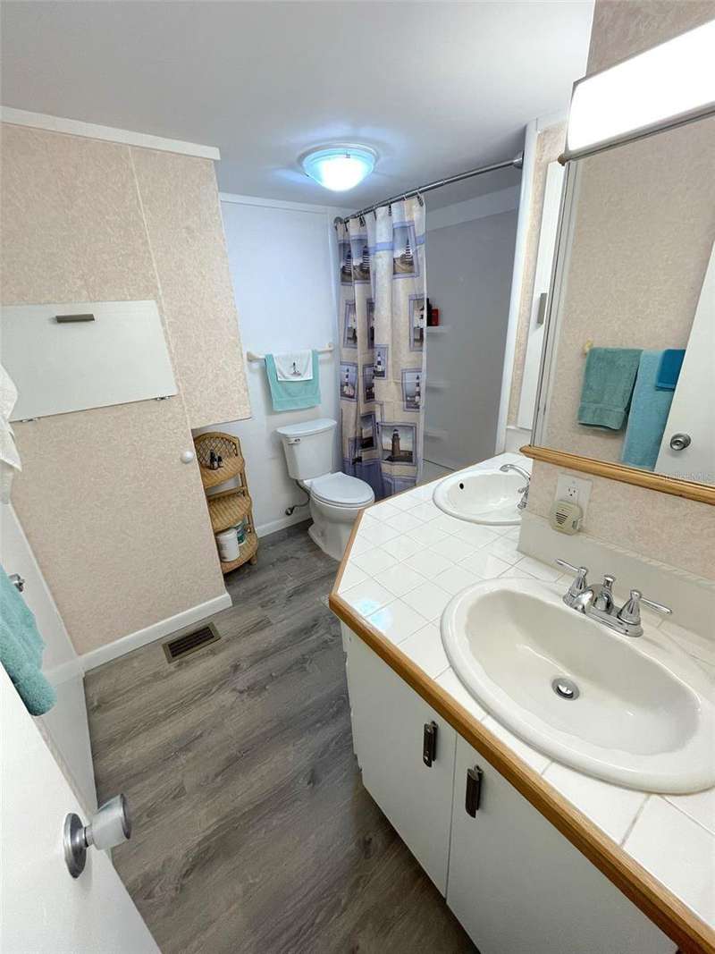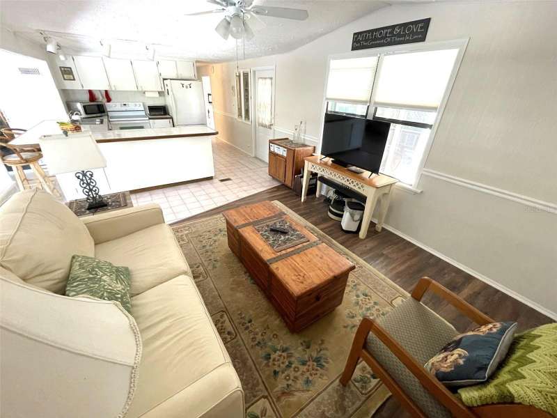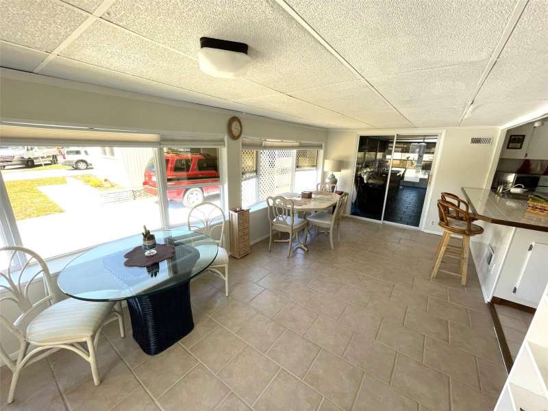 Nestled in the highly sought-after boating community of Harbor Cove, this unique and lovely manufactured home offers an impressive 1,129 sq. ft. of living space, thanks to two thoughtfully designed additions. Boasting a wide-open floor plan, the home’s kitchen seamlessly connects to the spacious living room and sun-filled dining room, where large picture windows flood the space with natural light. Just off the dining room, a charming Florida room provides the perfect spot to enjoy Florida’s mild winters. To the right of the home, a versatile addition houses a home office with laundry facilities and a bonus room ideal for crafting or hobbies. The split-bedroom layout ensures privacy, featuring two master suites—one at each end of the home. The home can comfortably sleep 7 adults. Outside, the beautifully landscaped lot is enhanced by a picturesque concrete mosaic table and benches, perfectly positioned to enjoy the serene view of the neighboring garden. A new 10' x 8' shed with a workbench offers additional storage and workspace. The home has been lovingly maintained, with a freshly painted exterior and a durable 2015 membrane roof. Turnkey furnished with an HOA of only $99 per year, this home is immaculate and ready for its next owner. Harbor Cove is a premier 55+ waterfront community known for its active lifestyle, fantastic boating access, and resort-style amenities. Residents enjoy direct access to the Myakka River, a marina and boat ramp, heated pools, a clubhouse with year-round activities, tennis and pickleball courts, and so much more. Whether you're looking for a place to dock your boat or simply relax in a vibrant social setting, Harbor Cove offers the perfect Florida lifestyle. Don't miss this rare opportunity to own a one-of-a-kind home in this highly desirable community!