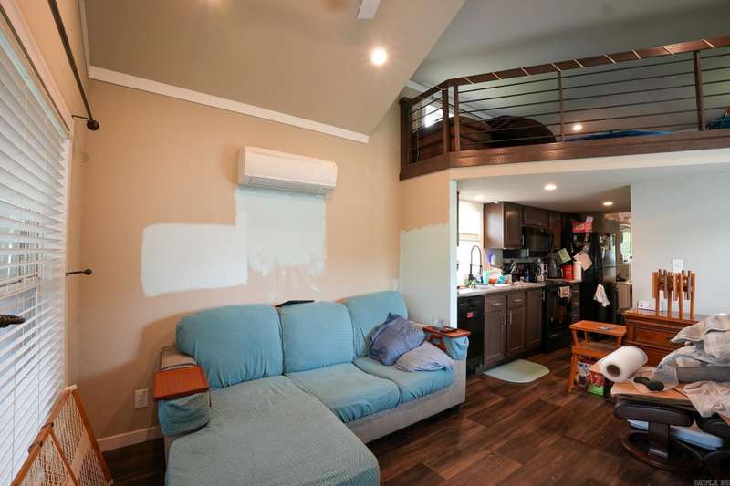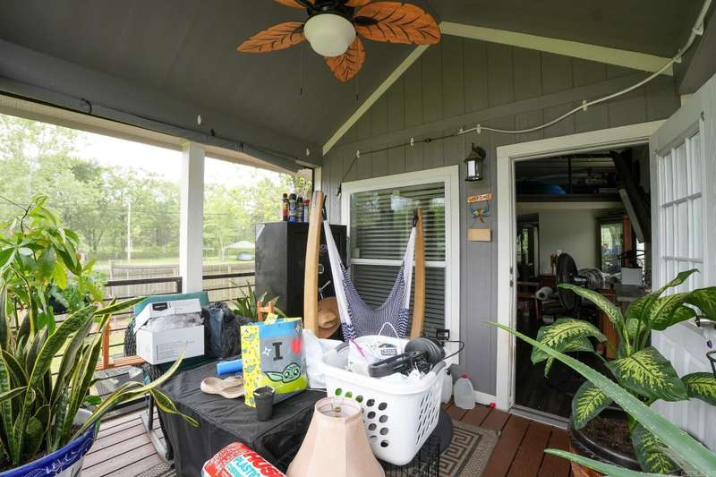 Fully fenced , home sits on permanent foundation , Serene surrounding. the house features a screened front porch, living room with built in sideboard , Kitchen includes dishwasher, double sink . Washer and Dryer convey. Built in closet, Storage Loft There is storage shed outside.