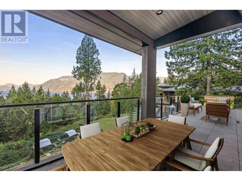 OCEAN VIEWS & GORGEOUS SUNSETS create the perfect setting for this stunning custom home. 4460sf of finished living+ 1,033 sf of outdoor patios & covers decks you can enjoy year round. The quiet natural setting is almost an acre (.88 acre/38,211 sf) & fully landscaped with garden, fire pit & storage shed. Finishes include; Nichiha siding, standing seam metal roof, Pela metal clad windows, 3-panel moving glass wall system, 8´ doors on main floor, incredible modern kitchen for those that love to cook & entertain, quartz counters, Grohe plumbing fixtures, Kohler toilets and sinks, LED lighting, heat pump/air conditioning. Zoning allows legal suite+detached dwelling for the future if desired. NEW VILLAGE with market, restaurants & daycare. FOREIGN BUYERS CAN BUY IN BRITANNIA BEACH & Empty Housing Tax does not apply. (id:58403)