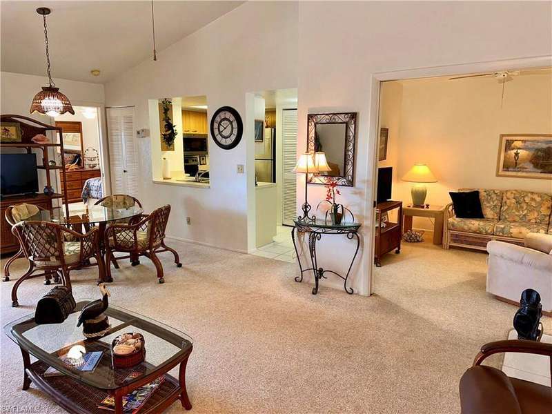 You must see this TURNKEY TOP-FLOOR CONDOMINIUM, offering serene long-range views of the golf course. This extremely well-maintained END-UNIT has had only 2 owners and is filled with natural light. Feels so spacious with VAULTED CEILINGS. Enjoy 2 large bedrooms and 2 baths, PLUS a versatile den. Equipped with roll-down shutters for added protection, this condo is nestled in the highly sought-after Cross Creek Golf Community-where golf is included! This home is perfectly situated off Daniels Parkway, providing easy access to everything Fort Myers has to offer. Enjoy the convenience of nearby beaches, premier shopping, spring training stadiums, diverse dining, theaters, and the scenic Six Mile Cypress Slough Preserve walking trails. With quick access to I-75 and the International Airport, travel and commuting are effortless. The pet-friendly Cross Creek community offers an impressive array of amenities, including bundled golf, a clubhouse with a restaurant, a resident pool and heated spa, a screened picnic area with two gas BBQs, and tennis courts.