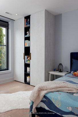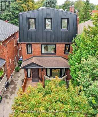 A masterfully reimagined residence that captures the essence of contemporary luxury. Designed for the discerning professional family, this home balances refined style with livability - a rare find in the one of the city's most coveted east-end enclaves. This exceptional 3+1 bedroom, 5 bath, custom home, blends architectural detail, sophisticated interiors and forward thinking engineering with an open-concept main level, 10 foot ceilings and almost 3000 square feet of living area. The home includes wide plank Maple hardwood floors, custom millwork and many upgrades that set a tone of quiet and contemporary luxury. Passive Home rated floor to ceiling windows and fully electric Hunter Douglas blinds accentuate sun-filled rooms. The living and dining areas are ideal for elegant entertaining, anchored by a Scavolini kitchen with an inviting quartz island that truly inspires culinary kings and queens - complete with ultra high end professional-grade appliances. Second level, private quarters offer a sanctuary for modern family life. The staircase, lined with a slatted white oak floor to ceiling feature wall winds into the open concept den and 2 abundantly appointed bedrooms with artful detailing and two individual full baths and laundry room. Rising to the 3rd floor's westward view of the city, the primary suite features 5 pcs ensuite, stone crafted soaker tub and Scavolini walk-in. Lower level integrates form and function with a stylish media lounge area, home office and exercise area. Employing a premium, performance based eco-friendly Passive Horne template, the home includes heated floors throughout. Roof top solar panels create an almost net zero energy efficient home. West facing urban backyard oasis for morning coffee and entertaining. Steps to Greenwood Park and Queen East shops, this is the ideal home for Up-sizers, Urban Professionals and the discerning buyer, who appreciates craftsmanship, community and modern convenience in an upscale, urban neighbourhood.