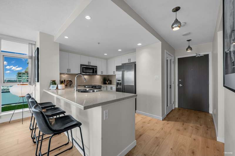 Pride of Ownership! 840 sqft of sophisticated living at The Motif by reputable Appia Group! This spacious CORNER home offers 1 bed + large den (easily a 2nd bedroom), with a bright and functional layout. Well-defined living and dining areas, a large walk-in closet in bedroom, and a 108-sqft private balcony showcasing sweeping Metrotown & Downtown views. The large den offers flexibility for a home office, guest room, or nursery. Located in the heart of Brentwood with shops, dining, and skytrain just steps away, The Motif is tucked away on a quieter inner street offering lower-density living with just 6 units per floor. Leave your car in the secure parking spot and walk to everything! Also one locker included. Don’t miss this gem!