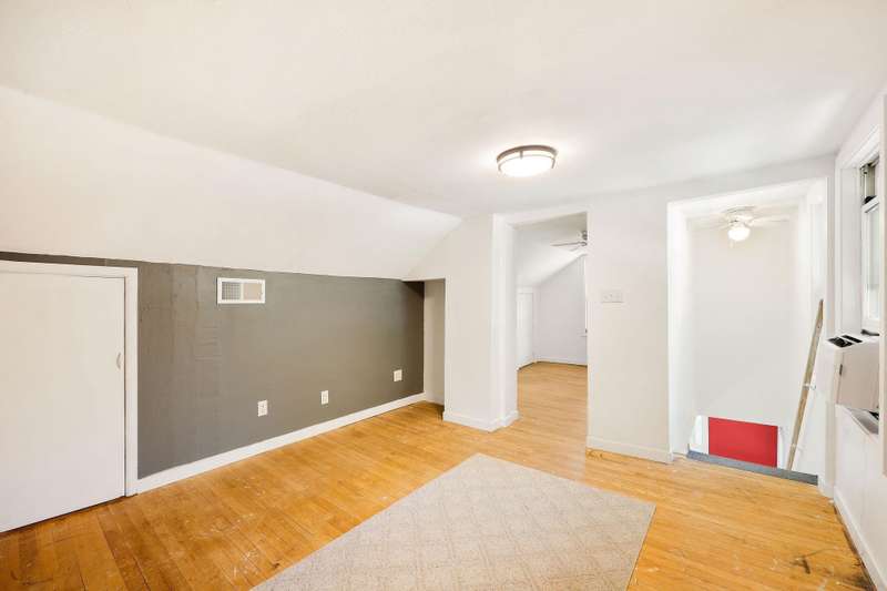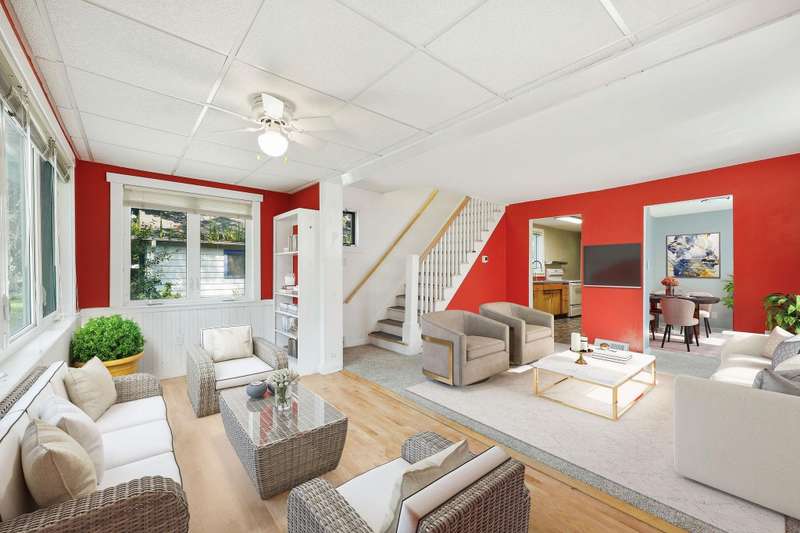 Charming and functional! This home features new carpet in the living room (2025), a new stair banister, and hardwood floors under the main-level carpet. The den/office off the living room and freshly painted kitchen adds to the appeal. Upstairs, the large primary bedroom, walk-in closet, a Juliet balcony, and a landing perfect for office space or a reading nook. AC units are WiFi-enabled for comfort and control. The lower level offers great space storage and room to tinker. In the backyard, enjoy a beverage on your large deck, a fully fenced backyard and shed for extra storage.