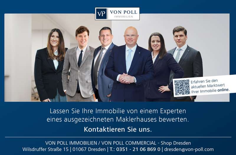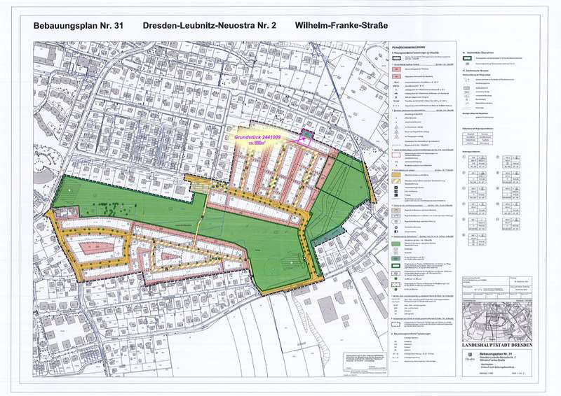 In a sought-after residential location in the south-east of the state capital, this approx. 890 m² building plot presents itself as a special opportunity. If you would like to realize your individual dream home close to the city center, the optimal orientation promises you wonderful sunshine all day long and, thanks to its peripheral and slightly sloping location, you can enjoy a fantastic panoramic view. Access is via a traffic-calmed residential road, so there is no direct through traffic and you live in pleasant peace and quiet with plenty of space and privacy. Despite this wonderfully quiet location with views towards Saxon Switzerland, the charming village center and public transport connections are within walking distance. The buildability of the property is regulated according to the existing development plan Leubnitz-Neuostra No. 31 of the city of Dresden. Accordingly, it is possible to build a detached house on the plot. Whether bungalow or town villa, both are possible. The following dimensions must be taken into account: Floor area max. approx. 120 m², eaves height max. 3.60 m, up to a maximum of 2 full storeys, with a choice of gabled, hipped or tent roof and a roof pitch of 25° to 45°. We will be happy to organize architectural planning for your future detached house on request. The plot is being sold without a developer commitment. The development is carried out by a developer and amounts to approx. 252€ per m² (basis for negotiation). These costs are not part of our offer and must be planned in addition. This means that you have to reckon with a total cost of approx. 493,000 € for the plot including development. There is also the possibility of deducting the green area portion of the property that can be developed from the development or not purchasing it. A division would be necessary here. This would then minimize the development costs.