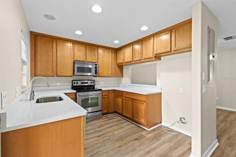 Under contract-accepting backup offers. One or more photo(s) has been virtually staged. Welcome to 6250 Maisie Rd, a charming and well-maintained townhome located in the desirable gated community of Eiland Park in Zephyrhills, FL. This spacious 3-bedroom, 2.5-bathroom home offers 1,561 square feet of comfortable living space with an open-concept layout perfect for both relaxing and entertaining. The kitchen is equipped with stainless steel microwave and range and brand-new upgraded Quartz countertops, opening seamlessly to a generous living and dining area. The downstairs flooring features brand-new luxury vinyl plank flooring. Upstairs, you’ll find three well-appointed bedrooms, including a spacious primary suite, along with two full bathrooms and a convenient laundry closet and brand new carpet. The home features brand-new interior paint through out upstairs and downstairs, a blend of brand new LVP and brand new carpet flooring, central air conditioning, and window blinds throughout. Seller is motivated. Make an appointment today to sell this lovely townhome. Residents of Eiland Park enjoy access to a range of community amenities, including a sparkling swimming pool, playground, sidewalks, and secure gated entry. The HOA is pet-friendly—with some breed and size restrictions—and covers exterior maintenance and a low monthly fee. The location is ideal, just minutes from local schools, shopping, dining, and parks, with easy access to major roads for commuting. Whether you're a first-time buyer, downsizing, or looking for a great investment, this move-in ready townhome is an excellent choice. Schedule your private showing today and come see all that this lovely property has to offer.