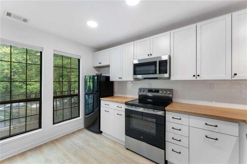 Welcome to this incredible find in the heart of Alpharetta! Freshly updated with brand-new flooring, lighting, kitchen appliances, butcher block countertops, and cabinets, this home is a rare opportunity at this price point and in this LOCATION. With no rental restrictions, this is a turn-key choice whether you're looking for your Alpharetta hideaway or an investment property. The main level features a large single-basin sink overlooking the great room, a cozy fireplace, generous ceilings, and sliding doors that open to a private back patio. Upstairs, both bedrooms are well sized with ample closets and en-suite bathrooms; one featuring a private balcony. LVP flooring flows throughout the main level, with plush new carpet upstairs. This is a rare, affordable option less than a mile from downtown Alpharetta and just two miles from Crabapple in Milton, with access to some of Georgia's finest schools. Alpharetta's Farmers Market runs nearly year-round, with seasonal festivals and endless shopping and dining at Avalon, Crabapple, downtown Alpharetta, Milton, and Roswell's Canton Street, everything you love is just minutes away!