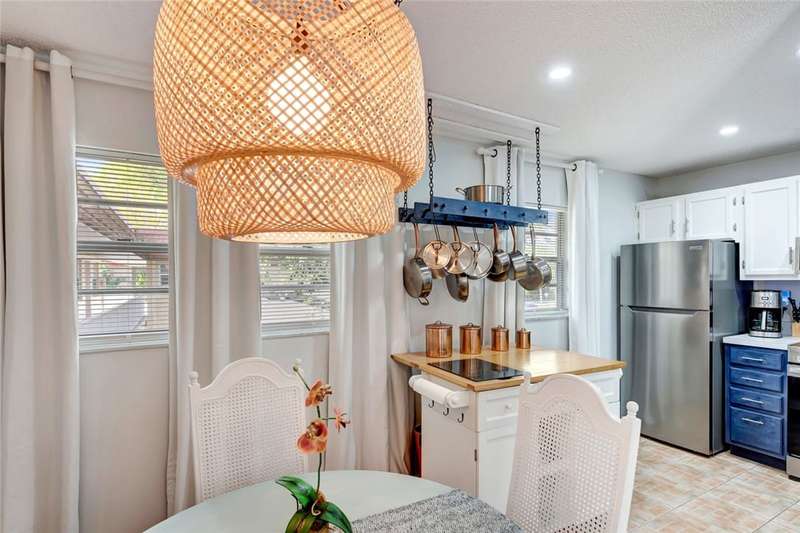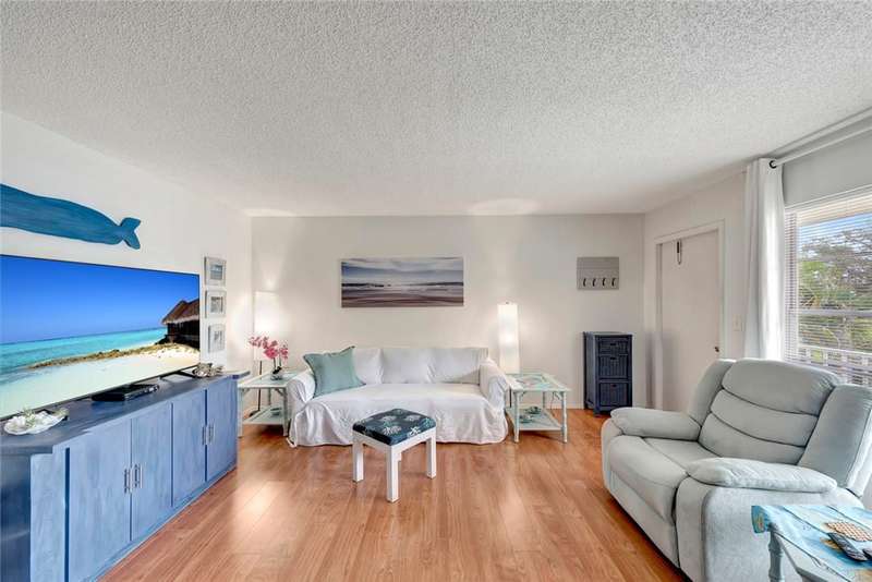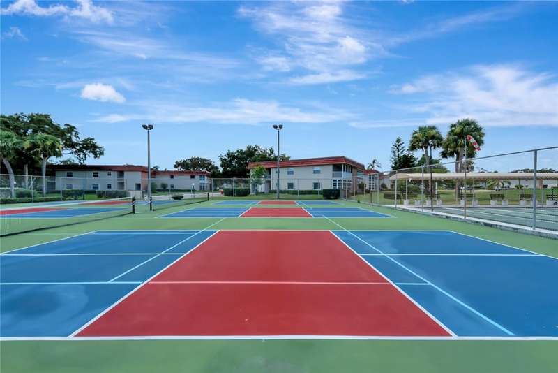 Turn Key, this bright and cozy 2/2 condo features new luxury vinyl plank flooring in main areas, ceramic tile in the kitchen, fresh paint, and LED lighting with new switches and GFIs. A new SS steel refrigerator and stove also add to the updated look. The enclosed lanai provides a shaded, quiet retreat year-round. Located within walking distance of the clubhouse, restaurant, and public golf course in an active 55+ community. Enjoy resort-style amenities: pools, pickleball, tennis, shuffleboard, and fitness center. Just minutes from the beach, shopping, and medical services. Rm sz apprx