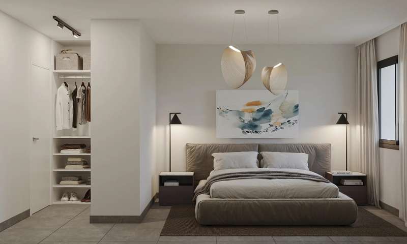 The apartments for sale in Benidorm Alicante include two spacious bedrooms and two modern bathrooms. Interiors are finished with a fully equipped kitchen with appliances, ducted air conditioning, electric shutters in the bedrooms, and elegant spot lighting in bathrooms and kitchens. A generous covered terrace and a private parking space complete the homes, blending comfort and functionality.