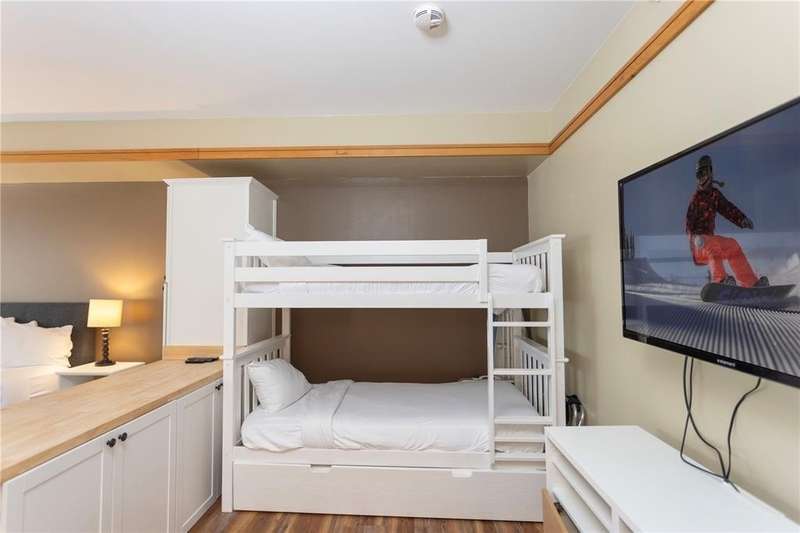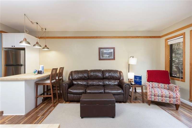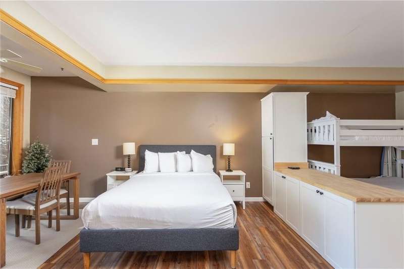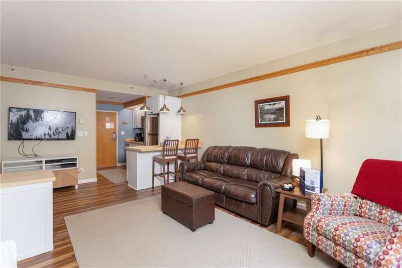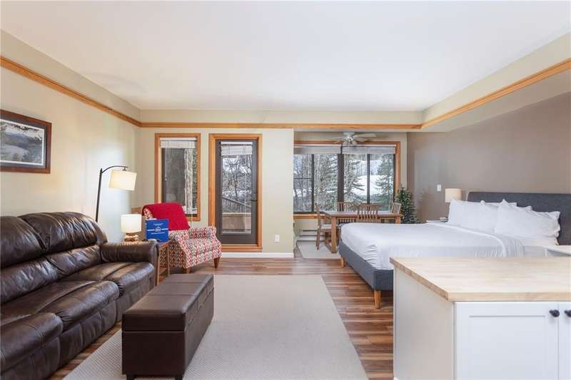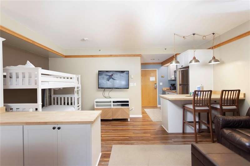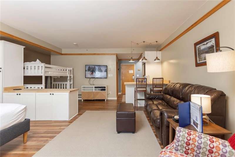 Ski-in/ski-out convenience at Slopeside condos with an extremely livable floorplan. This ground floor walkout residence could not get any more convenient and you can step outside your door and be skiing in seconds. Great summer usage as well being right on the recreation path, and the Snake River is out your back door. With similar square footage to most 1 bedroom units in nearby River Run, this oversized studio lives large! Located in the closest Slopeside building to the ski lifts, unit 2777 has premier views facing the slopes and a spacious patio. The property has been upgraded with new flooring, furnishings, kitchen, and more. The main living space has been attractively partitioned for an additional sleeping area and storage while still having a full separate dining room facing the ski area. Slopeside features underground parking, ski lockers, hot tubs, firepit area and an unbeatable location at the Mountain House Base Area.