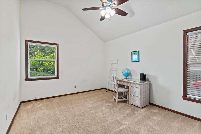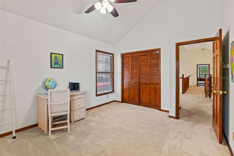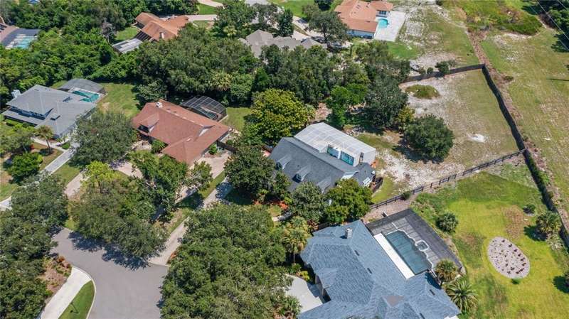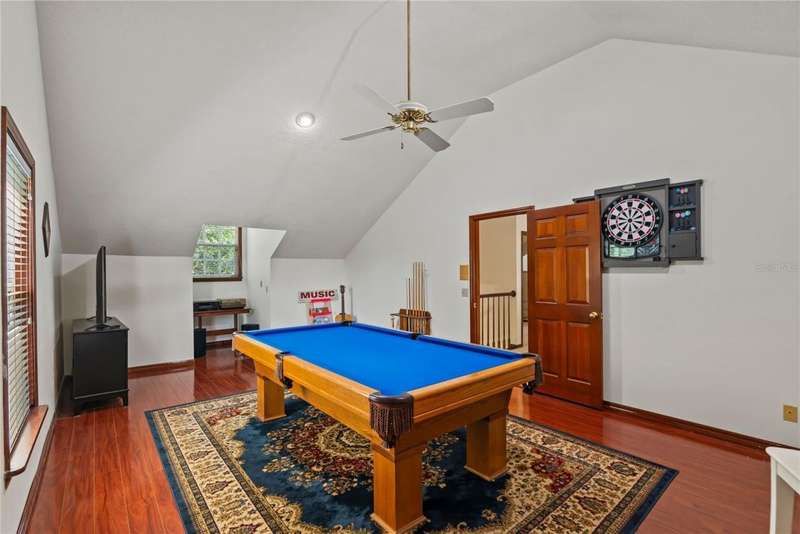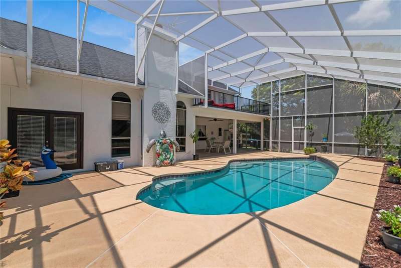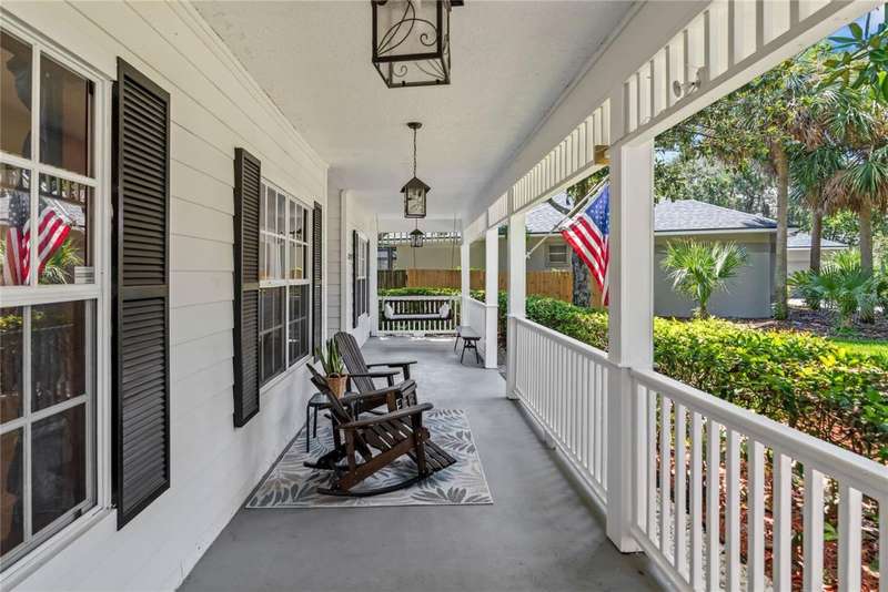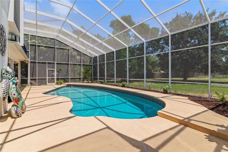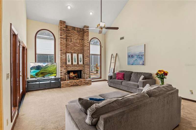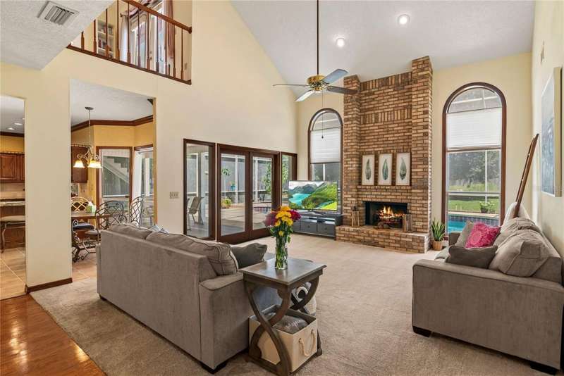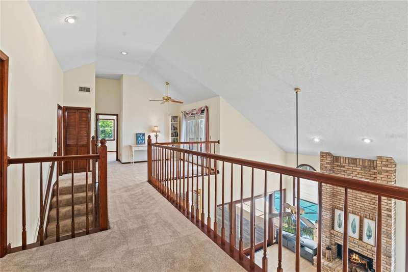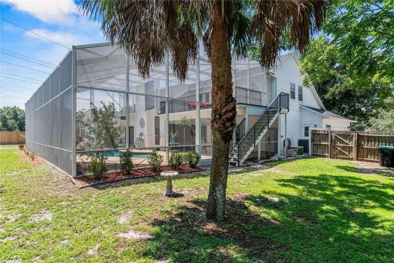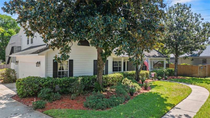 Tucked at the end of a quiet cul-de-sac in the sought-after Turnbury Woods community of Dr. Phillips, this four-bedroom, three-bath home combines timeless curb appeal with modern updates on nearly an acre of fenced property. A concrete driveway and covered front porch with a swing create a classic first impression, while mature oaks and manicured landscaping frame the home in natural privacy. Inside, the layout offers flexibility and flow, featuring an open main living area with vaulted ceilings, wood trim, and a wood-burning brick fireplace. The kitchen highlights granite countertops, solid wood cabinetry, stainless appliances, and a breakfast bar that opens to the family room and pool views beyond. The spacious owner's suite is located on the first floor, designed for comfort and privacy, with a second bedroom and full bath nearby-ideal for guests or multigenerational living. Upstairs, two additional bedrooms, an office, and a large bonus room with a walk-in closet provide abundant space for work, play, or conversion to a fifth bedroom. A second-floor Trex balcony overlooks the screened pool, deck, and expansive backyard, where a hidden patio offers a peaceful retreat accessible from the yard. The oversized two-car garage includes a workbench, built-in storage, and space for an extra refrigerator or freezer-ideal for projects or additional organization. Recent updates include a new roof (2018), hurricane-rated screen enclosure (2018), upstairs HVAC (2016), new downstairs HVAC (2025), and new drain field (2023). Thoughtful details such as wood staircase railings, a formal dining room, and large windows throughout highlight the home's craftsmanship and warmth. Beyond the property, this quiet enclave offers easy access to Bay Hill, Restaurant Row, and Sand Lake Road shopping and dining, as well as area theme parks and top-rated schools including Palm Lake Elementary, Chain of Lakes Middle, and Olympia High. Enjoy the best of Central Florida living with a spacious fenced lot, screened pool, balcony overlooking the yard, oversized garage, low HOA fees, and proximity to the golf, lakes, and entertainment that make Dr. Phillips one of Orlando's most desirable neighborhoods.