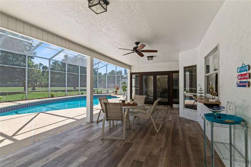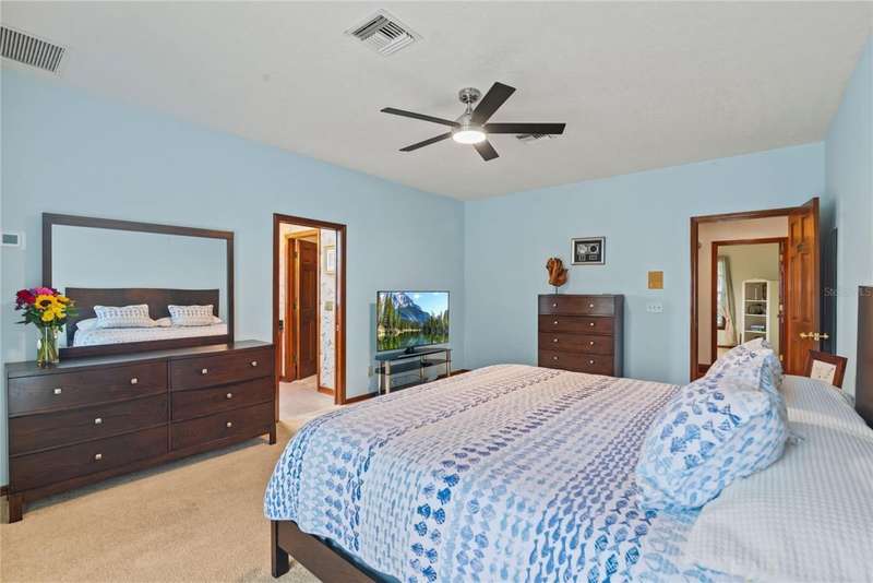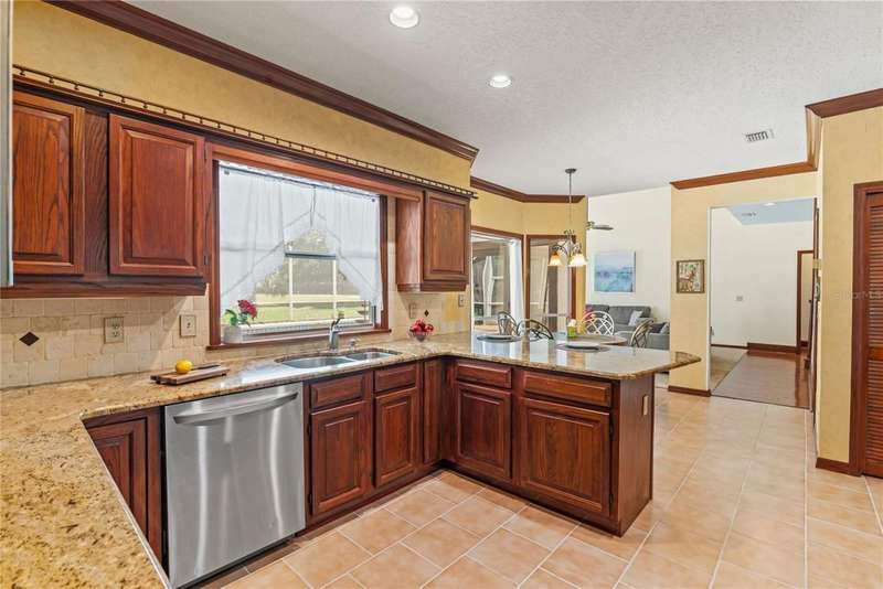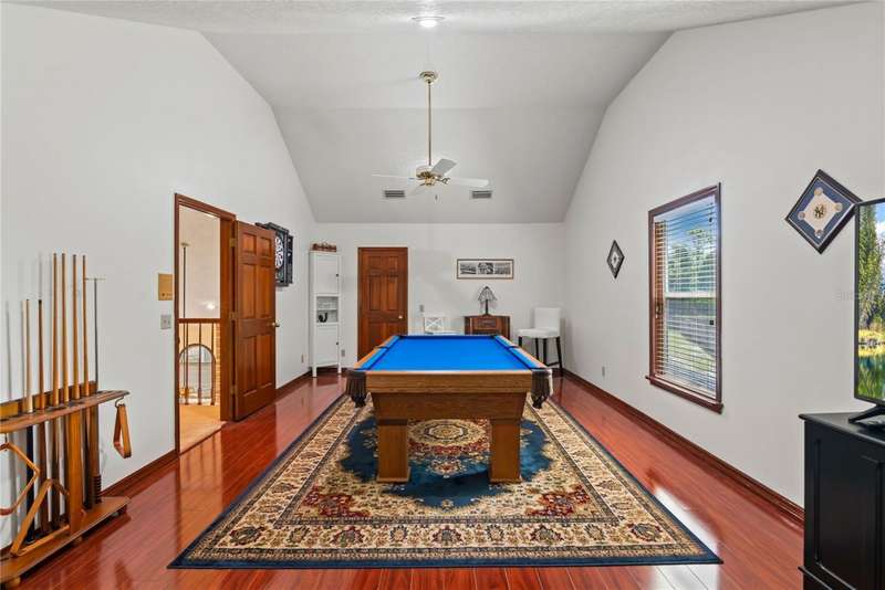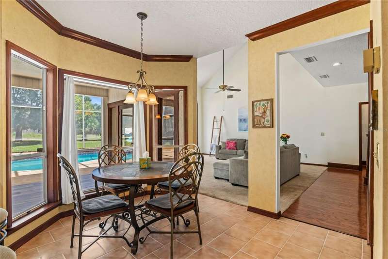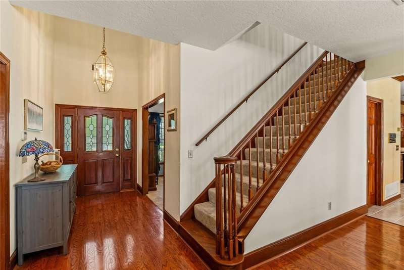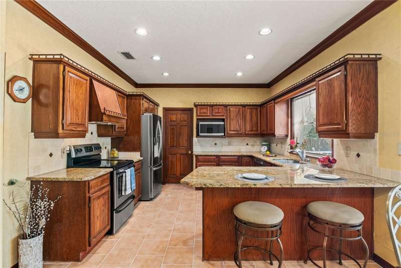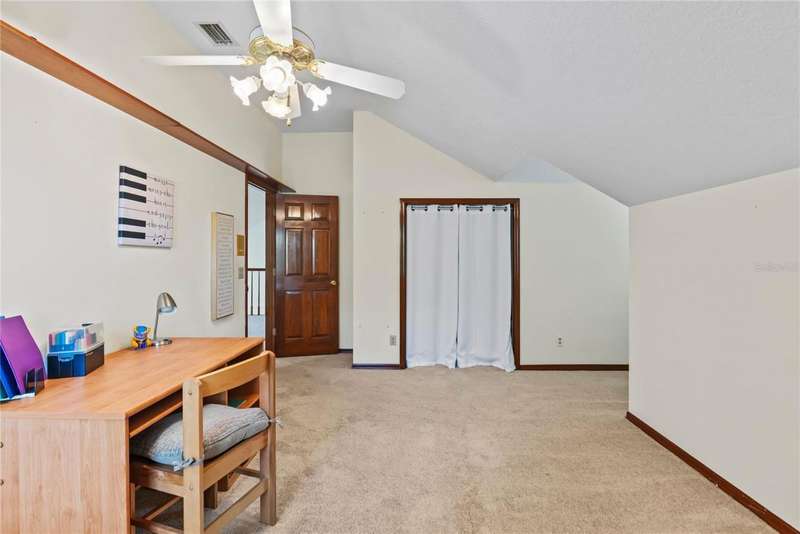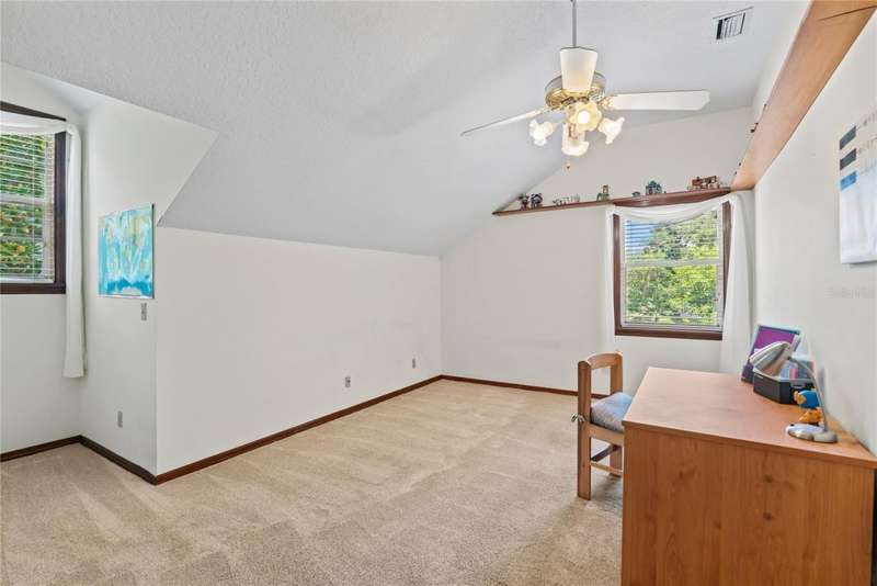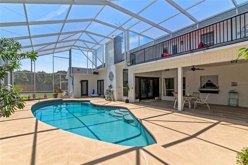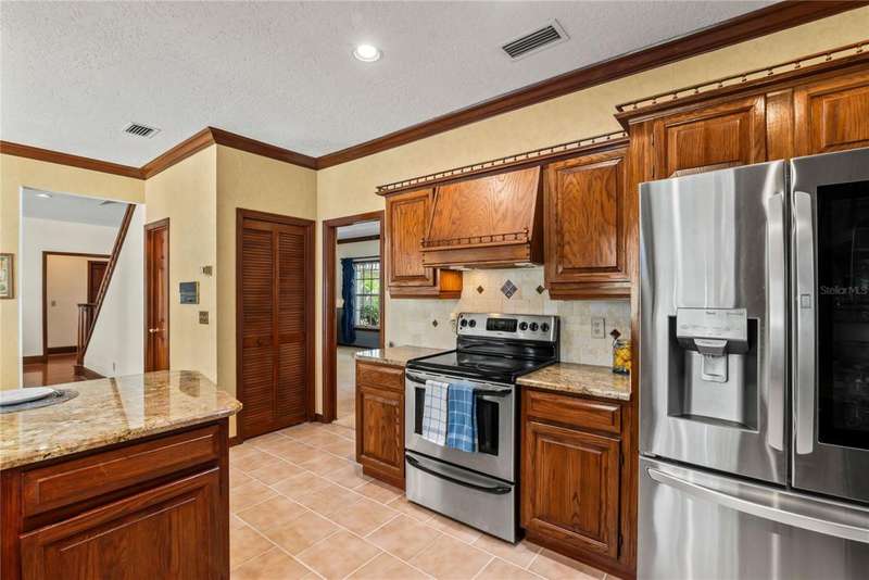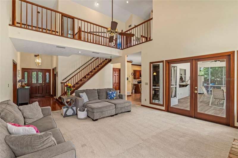 Tucked at the end of a quiet cul-de-sac in the sought-after Turnbury Woods community of Dr. Phillips, this four-bedroom, three-bath home combines timeless curb appeal with modern updates on nearly an acre of fenced property. A concrete driveway and covered front porch with a swing create a classic first impression, while mature oaks and manicured landscaping frame the home in natural privacy. Inside, the layout offers flexibility and flow, featuring an open main living area with vaulted ceilings, wood trim, and a wood-burning brick fireplace. The kitchen highlights granite countertops, solid wood cabinetry, stainless appliances, and a breakfast bar that opens to the family room and pool views beyond. The spacious owner's suite is located on the first floor, designed for comfort and privacy, with a second bedroom and full bath nearby-ideal for guests or multigenerational living. Upstairs, two additional bedrooms, an office, and a large bonus room with a walk-in closet provide abundant space for work, play, or conversion to a fifth bedroom. A second-floor Trex balcony overlooks the screened pool, deck, and expansive backyard, where a hidden patio offers a peaceful retreat accessible from the yard. The oversized two-car garage includes a workbench, built-in storage, and space for an extra refrigerator or freezer-ideal for projects or additional organization. Recent updates include a new roof (2018), hurricane-rated screen enclosure (2018), upstairs HVAC (2016), new downstairs HVAC (2025), and new drain field (2023). Thoughtful details such as wood staircase railings, a formal dining room, and large windows throughout highlight the home's craftsmanship and warmth. Beyond the property, this quiet enclave offers easy access to Bay Hill, Restaurant Row, and Sand Lake Road shopping and dining, as well as area theme parks and top-rated schools including Palm Lake Elementary, Chain of Lakes Middle, and Olympia High. Enjoy the best of Central Florida living with a spacious fenced lot, screened pool, balcony overlooking the yard, oversized garage, low HOA fees, and proximity to the golf, lakes, and entertainment that make Dr. Phillips one of Orlando's most desirable neighborhoods.
