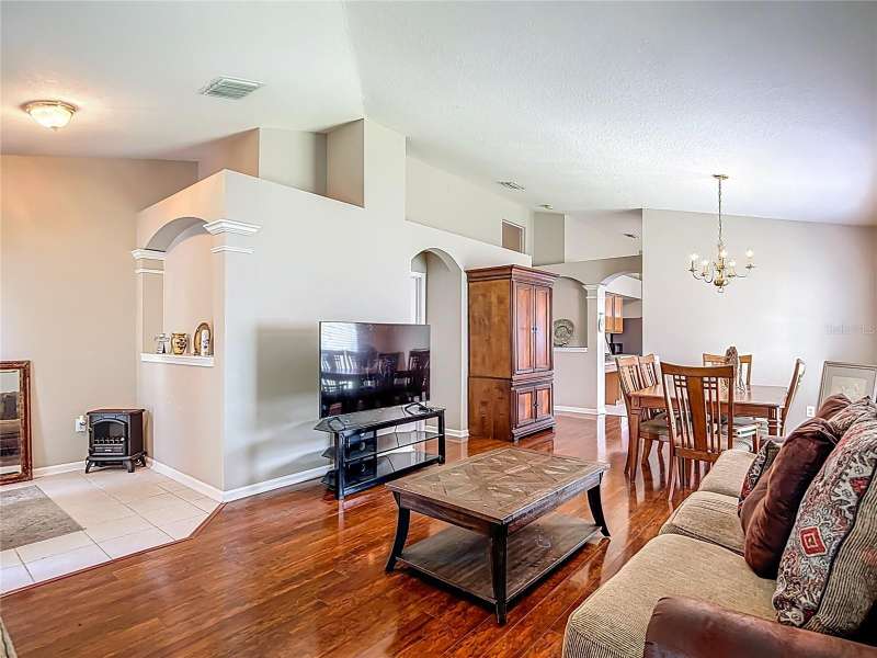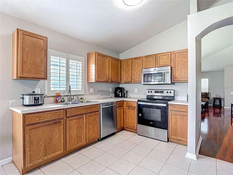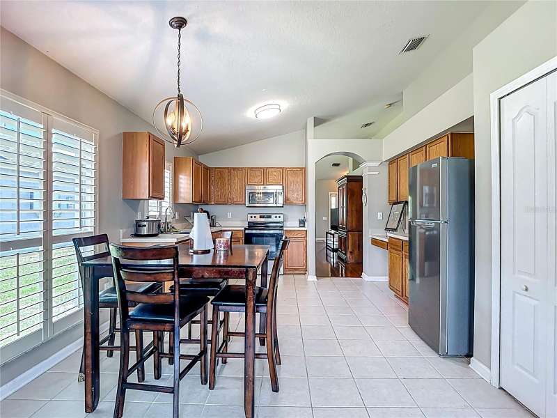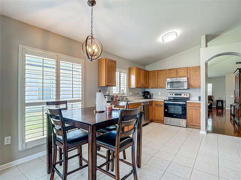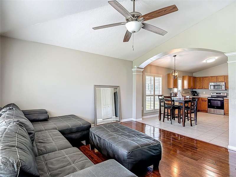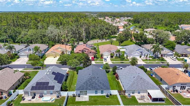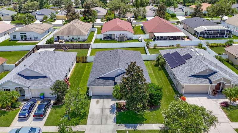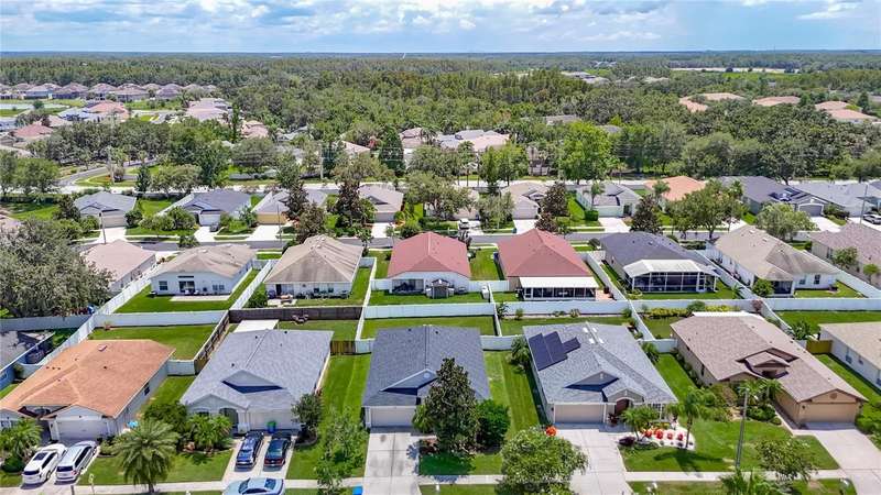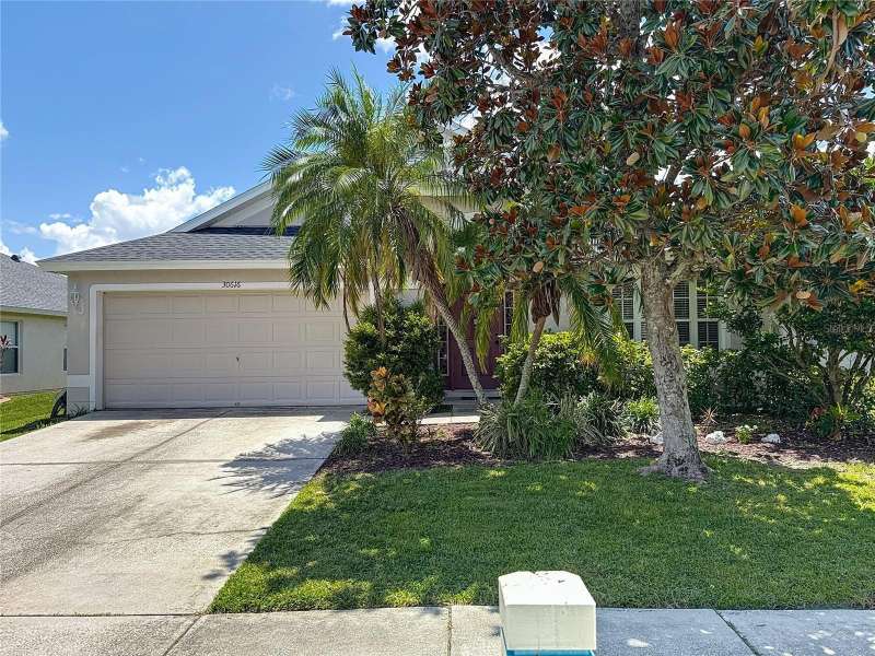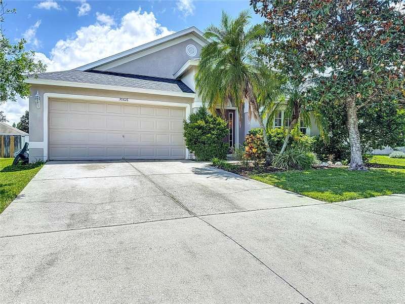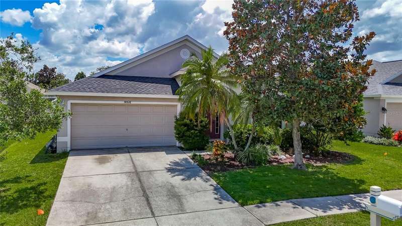 Welcome to this inviting 4 bedroom, 2 bath residence located in the sought after community of Meadow Pointe in Wesley Chapel. Nestled in the peaceful gated village of Ammanford, this home lives much bigger than its 1956 square feet. Fully fenced and Low HOA plus a new roof!(April ’25). Step inside to discover a light filled open floor plan, vaulted ceilings, and plantation shutters, featuring a spacious living area ideal for entertaining or relaxing with loved ones. The kitchen boasts ample cabinetry, generous counter space, and a breakfast nook overlooking the backyard, an ideal spot for your morning coffee. The spacious primary suite offers a private retreat with a walk in closet and a full en-suite bathroom with split vanities with a makeup/vanity space. Three additional bedrooms provide plenty of flexibility for guests, a home office, or playroom. Enjoy the Florida sunshine in your fenced backyard, perfect for outdoor gatherings, gardening, or simply unwinding. Additional highlights include a two car garage, laundry area, and energy efficient features throughout. Located just minutes from top rated schools, Prime Outlets and The Shoppes of Wiregrass for all your shopping and dining pleasures, BayCare and AdventHealth hospitals for your medical needs and easy highway access. This home brings the best of Wesley Chapel right to your doorstep. Don’t miss the opportunity to make 30616 Lanesborough Circle your new address, schedule your private tour today!