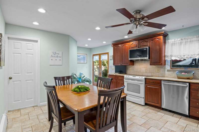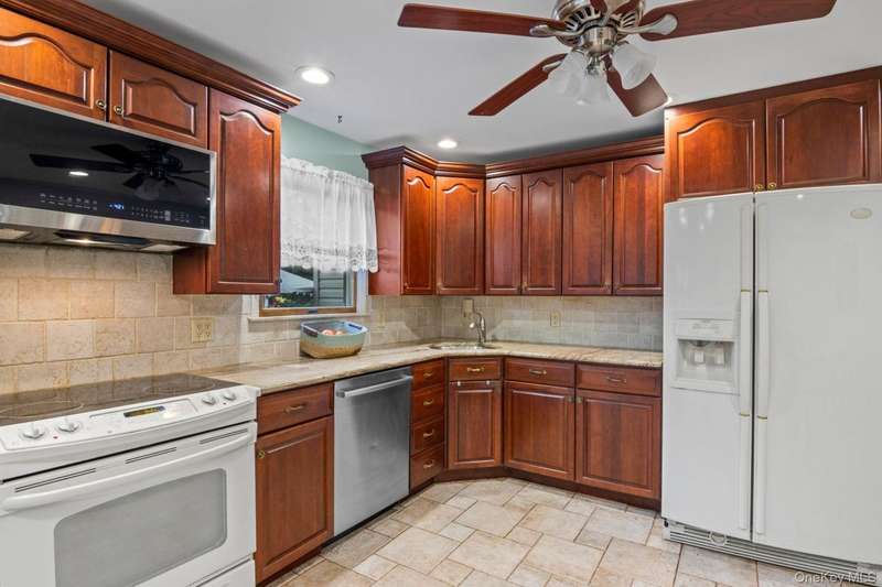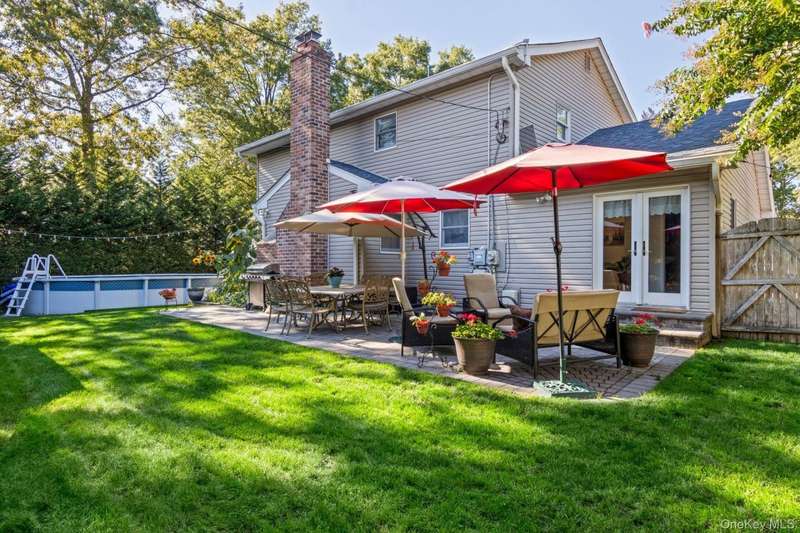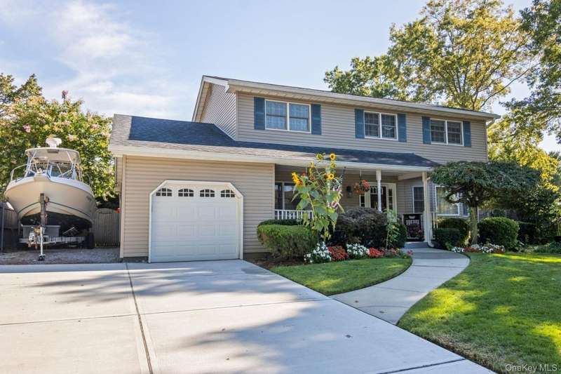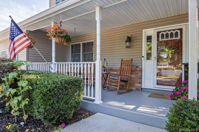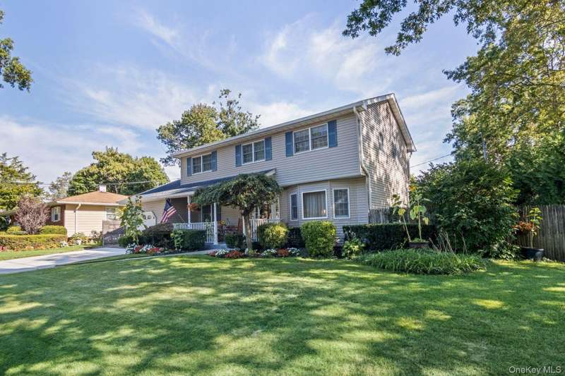 Welcome to this beautiful 4 bedroom, 2.5 bath Colonial that blends timeless character with modern updates. Step onto the cozy front porch and into a warm, inviting home featuring hardwood floors, a spacious living room, formal dining room, family room with fireplace, and an updated kitchen with cherry cabinets, granite countertops, porcelain floors, and stylish backsplash. Bathrooms have been tastefully renovated. The home offers gas heat, central air conditioning with a new compressor and handler, solar panels, and an in ground sprinkler system, adding comfort, efficiency, and ease of living. Enjoy additional living space in the partially finished basement, ideal for a playroom, office, or media area. Outdoor living is just as delightful with a paver patio and lush landscaping perfect for entertaining. The brand new concrete driveway is an added convenience. Located close to shops, the railroad, schools, beaches, and the charming Village of Northport with its waterfront park, restaurants, boutiques, and theater. This home offers both comfort and lifestyle, with amazing low taxes at $10,204.27. Hurry, this one will not last!