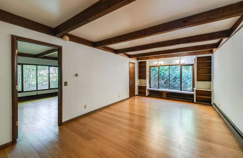 Nestled in complete privacy on 3.25 acres and surrounded by nature, this extraordinary mid-century modern home offers some of the most spectacular views youll find anywhere in the Hudson Valley. Designed to embrace light, space, and scenery, this 4 bedroom, 3.5 bath retreat perfectly blends timeless architecture with modern comfort. Gleaming hardwood floors and beamed ceilings highlight the stunning main level, where warm wood paneling and expansive windows create a seamless connection to the outdoors. The open-concept living and dining areas feature a gorgeous stone fireplace and flows effortlessly onto a large bluestone patio - perfect for entertaining while soaking in the breathtaking vistas. The spacious eat-in kitchen offers abundant cabinetry, a double sink, stainless steel appliances, and plenty of workspace. The expansive first-floor primary suite is a true sanctuary, featuring a private sitting room or den/flex space and a beautifully updated spa-like bath with marble flooring, double sinks, a massive walk-in shower, and exquisite tile work. A charming three-season room and a convenient half bath complete the first floors thoughtful layout. Upstairs, youll find three additional generously sized bedrooms, including a private princess suite with its own full bath, separate entrance, and deck with hot tub - ideal for guests or multi-generational living. A third full bath serves the remaining bedrooms. The walkout lower level offers a spacious family room, perfect for relaxing or entertaining, as well as a large utility/laundry room with stainless steel washer & dryer and workshop area. Outdoor living shines here with a 20 x 40 inground pool, a quaint pool house, and multiple seating areas designed to take in the panoramic views. Additional features include central air on the main level, a two-car garage with automatic doors, and ample storage throughout. Private, peaceful, and architecturally striking - this one-of-a-kind property captures the essence of mid-century modern living while offering modern luxuries and views that will take your breath away. Just minutes to the Arlington Town Center, Vassar Hospital, Mid-Hudson Regional Hospital, Vassar College, Marist College, The Culinary Institute of America, Poughkeepsie Train Station (Metro North), the Bardavon Performing Arts Center and Poughkeepsie's thriving culinary and arts scene. Dont miss this truly special home.