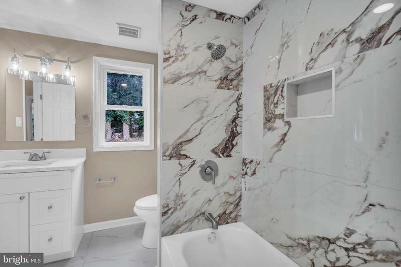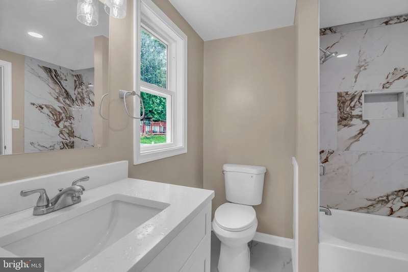 Welcome to this impeccably maintained and fully updated home, offering 4 spacious bedrooms, 2 modern full baths, and generous indoor and outdoor living areas. Recent upgrades include brand-new kitchen cabinets, gleaming granite countertops, stainless steel appliances, hardwood floors, ceramic tile, recessed lighting, and stylish fixtures throughout. The bathrooms, HVAC system, water heater, and windows are all newly replaced-providing peace of mind and move-in readiness. This home features a smart and versatile multi-level floor plan designed for flexibility and comfort. The main entry level includes a full bedroom and bath-ideal for guests, multigenerational living, or a home office-alongside the updated kitchen and dining area. One level up, the spacious living room offers the perfect gathering spot for relaxation or entertaining. Upstairs, you'll find the private primary suite with an en-suite bath, along with two additional bedrooms. The open-concept layout creates a seamless flow from the family room to the dining area, ideal for modern living. Enjoy cozy evenings by the fireplace or unwind in the sunroom with tranquil views of the expansive backyard. Step outside into a private outdoor retreat featuring a large covered patio-perfect for entertaining year-round. The backyard boasts custom brick planters, retaining walls, and an elevated lawn accessed via a charming brick staircase. A fully fenced yard with mature trees ensures privacy and space to play or garden. Additional highlights include a backyard shed and a walk-out lower-level entrance with railing-ideal for a future in-law suite or separate access. All of this with no HOA and a convenient location near National Harbor, MGM, and major commuter routes-this home truly has it all!