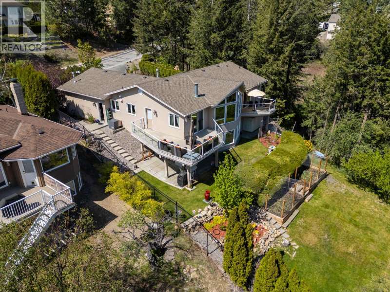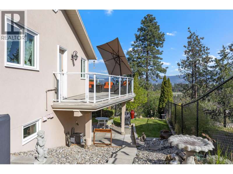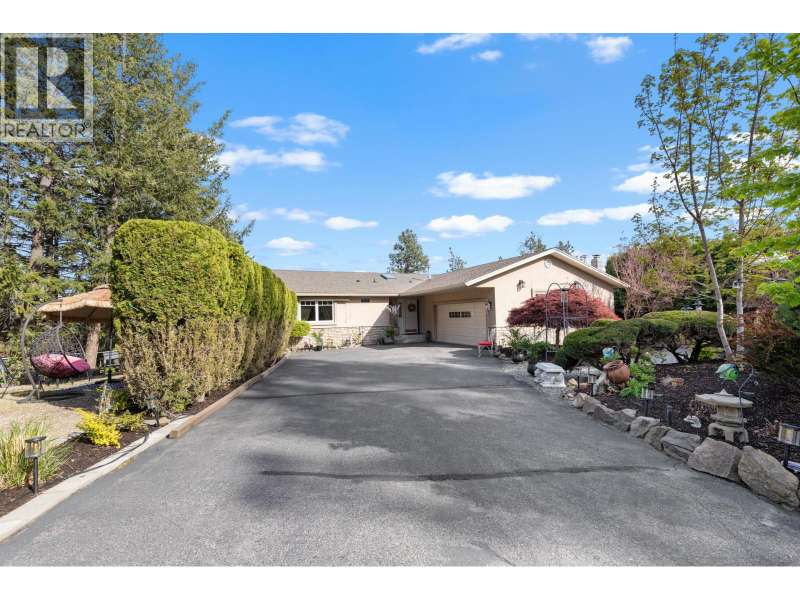 Welcome to 1991 Horizon Drive—an elegant, rancher home crafted for those who appreciate privacy, natural beauty, and timeless comfort. Tucked into a quiet, semi-secluded setting in one of West Kelowna’s most sought-after neighbourhoods, this property offers breathtaking views enjoyed from multiple private decks and professionally landscaped gardens. Backing onto a protected ravine with a gentle creek and surrounded by natural habitat, this home offers a peaceful retreat where deer roam and nature flourishes just outside your door. Inside, you’ll find four generous bedrooms, including a luxurious master bedroom with spa-inspired ensuite, walk-in closet, and a private balcony overlooking a majestic view. Designed for relaxed living and effortless entertaining, this home includes large, sun-filled living areas, a custom gourmet kitchen and a fully finished walk-out lower level with private entrances—ideal for extended family and guests. Additional highlights include a heated garage, UV 3M window protection, updated kitchen and bathrooms including quartz kitchen and bathroom countertops and updated fixtures, artistic vessel sinks, and dusk-to-dawn LED security lighting. All within minutes of downtown Kelowna, the waterfront, KGH, and essential services and amenities. Experience the perfect blend of natural tranquility and modern convenience. New PEX plumbing installed in June 2025. Book your private showing of this semi-secluded gem today! (id:58403)