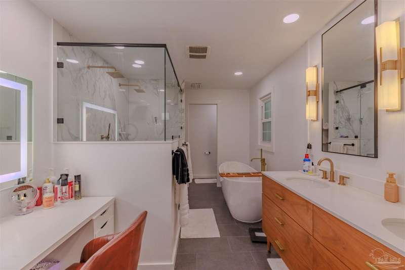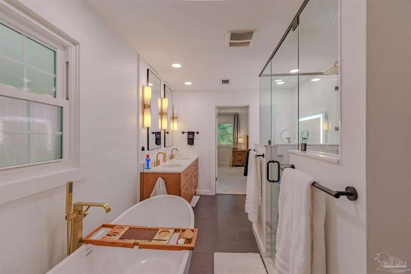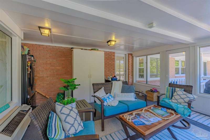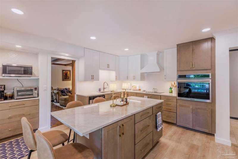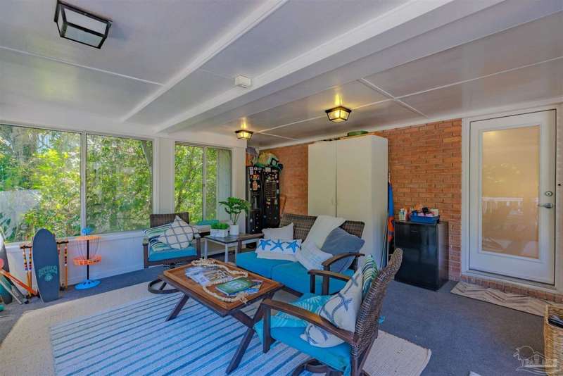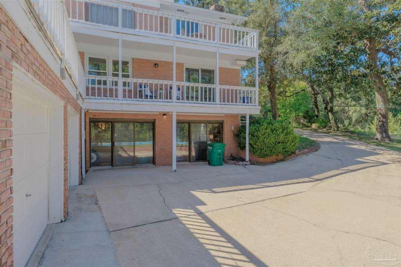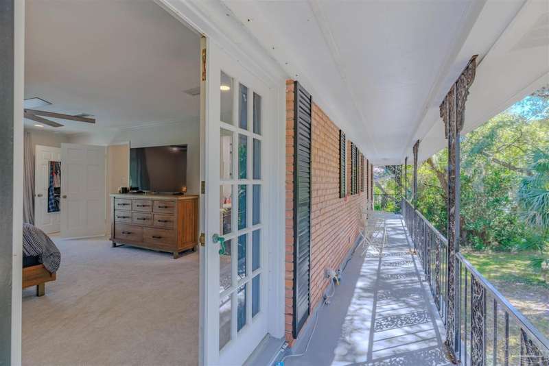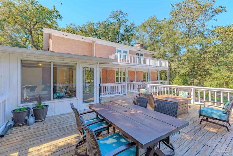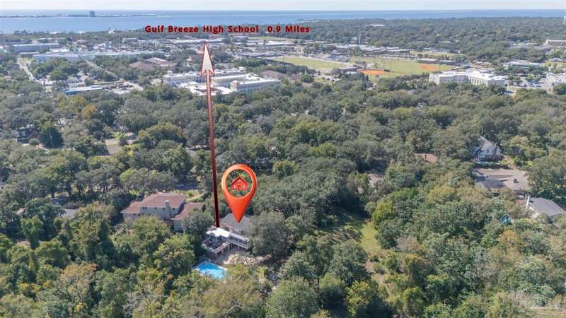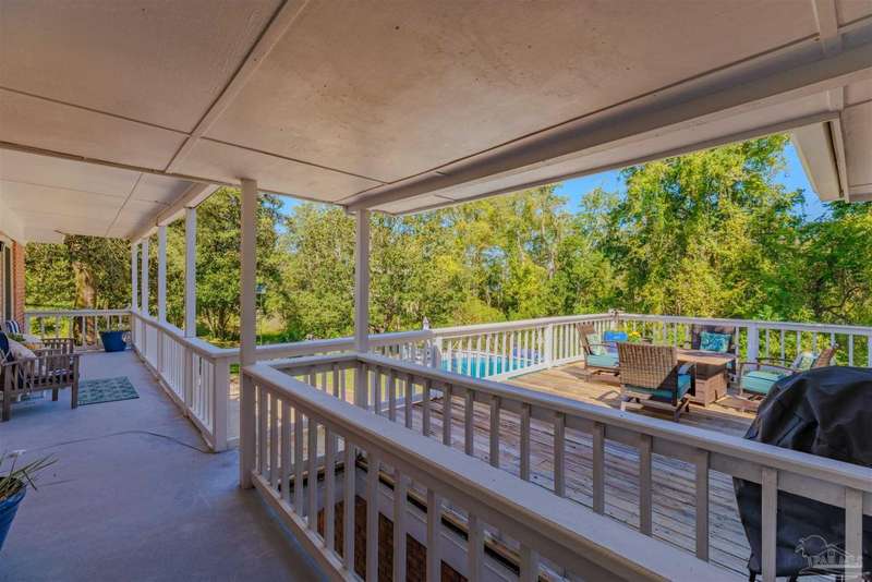 Beautiful Executive Brick Pool Home in the Heart of Gulf Breeze Proper. This impressive two story French Colonial home on well over half of an acre combines a natural private setting with modern comfort in one of Gulf Breeze Proper's most sought-after neighborhoods. Beautifully remodeled and upgraded in the past two years, the residence showcases a custom-designed kitchen featuring Taj Mahal Quartzite countertops, a gorgeous island and a picturesque bay window overlooking an expansive nature preserve. Enjoy the best of both worlds. A peaceful, private backyard with a peekaboo view of Pensacola Bay on a quiet cul-de-sac. The backyard features an expansive deck that overlooks a large pool. This gorgeous property also borders a waterfront preserve with beach access, while being just a short walk to shops, restaurants, ice cream shops and top rated Gulf Breeze Schools (elementary, middle and high). Inside, a spacious living room with beautiful wood flooring centers around a stately wood-burning fireplace, complimented by a bright formal dining room, custom designed master suite with large luxury ensuite, and an upstairs tailor made laundry room for convenience. Experience indoor-outdoor living with a full-length New Orleans inspired balcony that spans the entire upper floor, accessible from each bedroom. Enjoy the sunroom year-round-cozy in the winter and cool in the summer-with that feels like a sophisticated treehouse. This home offers a rare amenity in Florida, a finished walk out basement! The versatile downstairs offers endless possibilities. Easily adaptable as additional bedrooms, an in-law suite, game room, study, or flex space. With the neighboring lot also on the market, you can combine both properties to create a truly magnificent family estate. If you are searching for a beautiful updated family home offering privacy, city convenience, and placement in one of Floridas top school districts, this is the one. Welcome home!