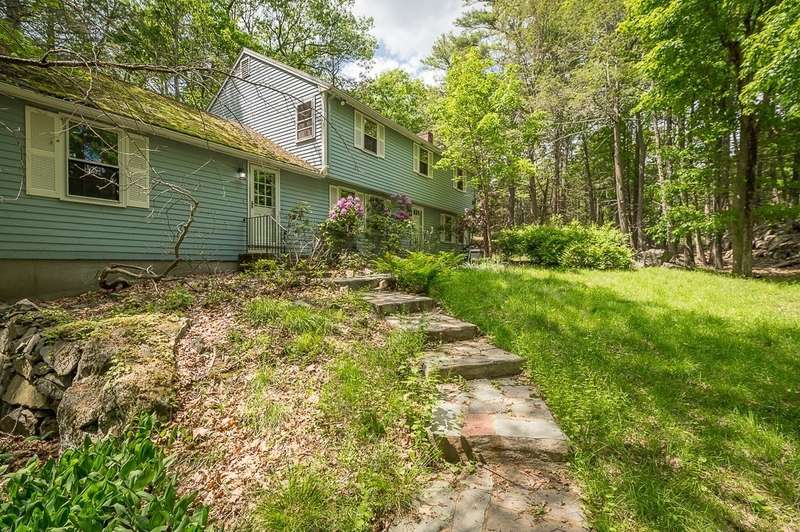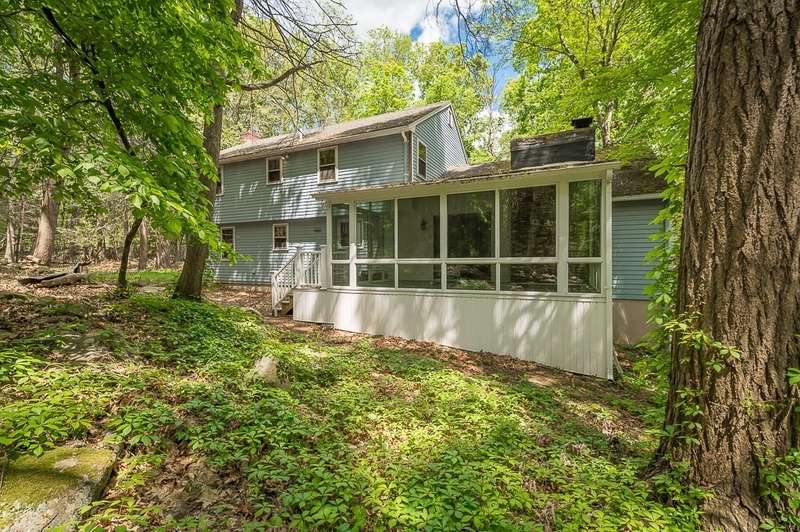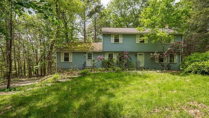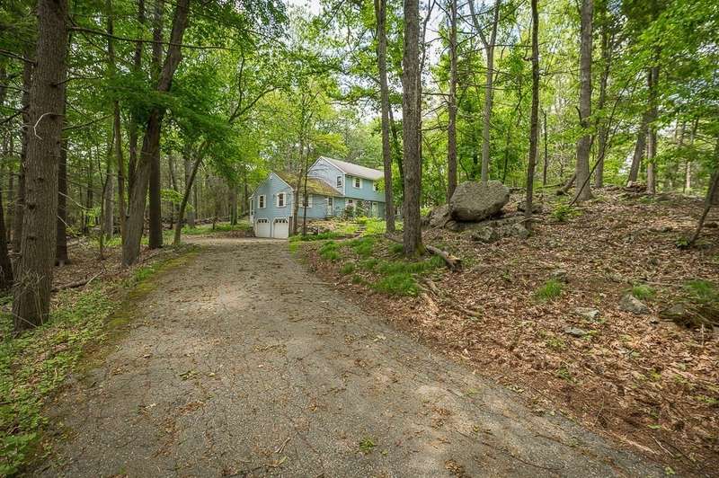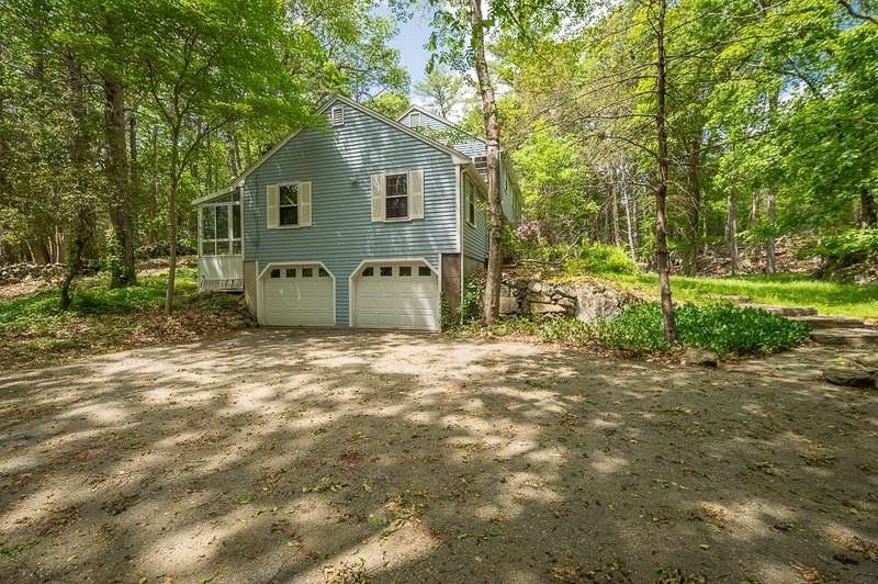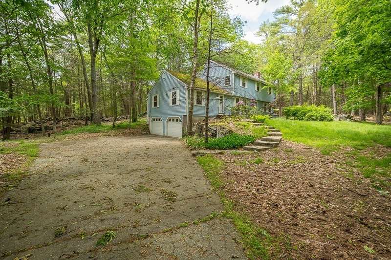 Welcome home to 37 Moonpenny Drive. This is a fantastic opportunity to build equity in this charming 4 bedroom, 2.5 bath home in desirable East Boxford neighborhood near Tri-Town Schools, highways and more. Set on 4+ wooded acres, this property is a nature lover's haven. The thoughtful layout includes a front to back formal, fireplaced living room plus entry hall, first floor office, laundry/half bath and open concept kitchen and fireplaced family room which opens to the all-glass, light filled sunroom off the back. Upstairs are three generous sized bedroom plus a primary suite with its own bath. Hardwood floors throughout.