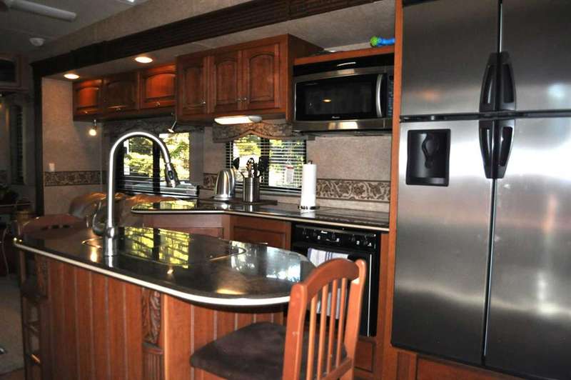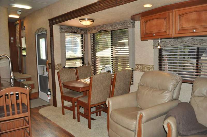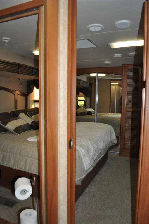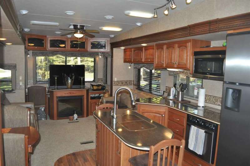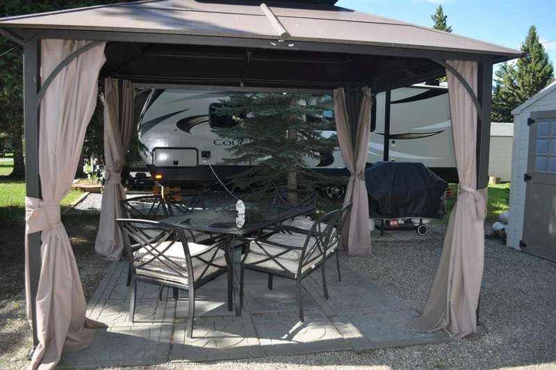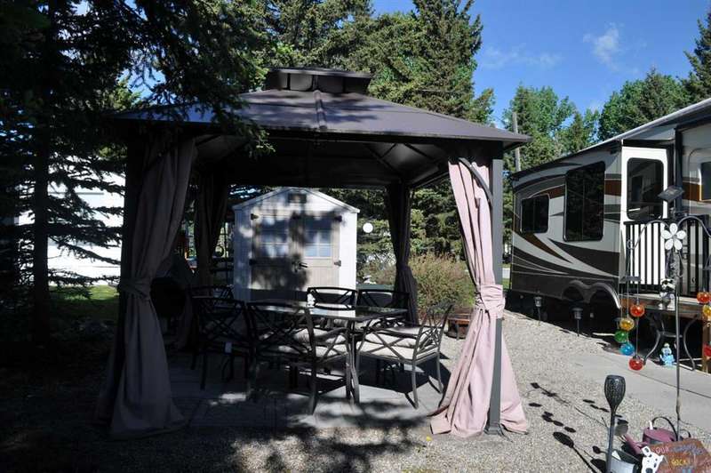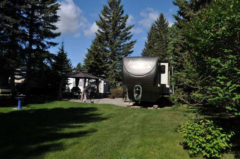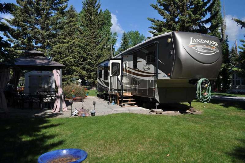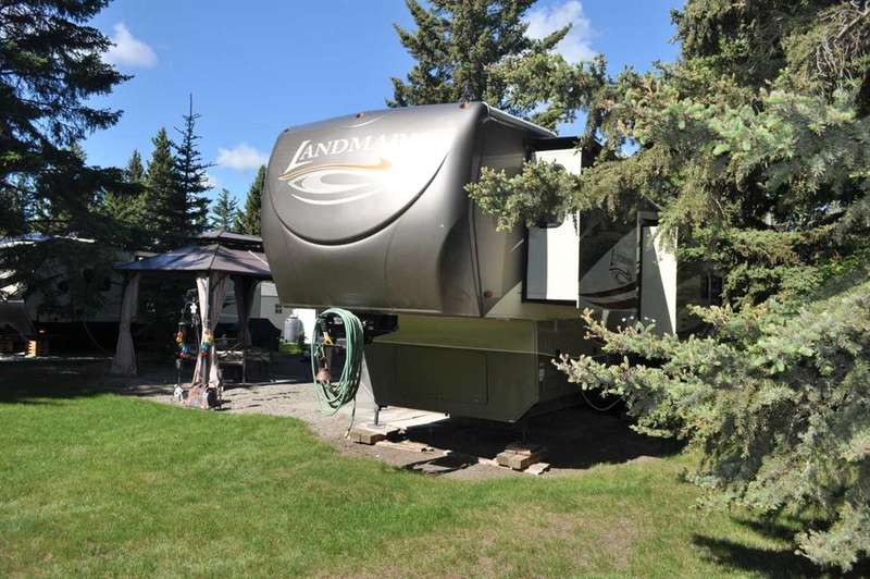 When looking for a great leisure park for you and your family look no further than the Tall Timber Leisure Park and this high-end, EXECUTIVE, like new HEARTLAND - Landmark - Rushmore 2011 travel trailer that has only ever been pulled three times, as Tall Timber has been its home. When discussing this RV unit the list is endless but the following are just a few of the added options: Air Hitch, Full body paint (no decals to fade over time), Stackable washer and dryer, Triple slide awning package, 4 point hydraulic leveling system, Keyless entry, Electric fireplace, 110v heating pads for holding tanks, 19" LCD Tv with remote on a hideaway safety system, generator prep system set up with control panel inside the trailer to mention just a few! The great upside with this opportunity as you have your own lot for this unit to continue to reside at Tall Timber or hook up and head out on destinations whenever your heart desires. There is absolutely NOTHING this unit lacks and the park amenities, staff, location are all greatly sought after. This is the perfect lot with green space on the north side giving you extra space for entertaining, and the lot itself has had a large amount of TLC since the current owners purchased it, with nicely landscaped lawn, walking stones, and a beautiful hard top gazebo sitting area around the firepit. There is a nice sized storage shed on the west side of the lot for all those little extras that you may need while enjoying your own little oasis at Tall Timber. This leisure park has great amenities including an indoor pool, hot tub, horse shoe pits, frisbee and outdoor games area, baseball diamond, playground and countless walking paths throughout the west country's natural environment. It is located on the eastern side of the beautiful town of Sundre which has shopping as well as some wonderful restaurants, famous Sundre Pro Rodeo, but the true highlight is the fact that you are mere minutes from the solitude of the west country where adventures never end and only an hours drive from Calgary. It truly is a gem!!