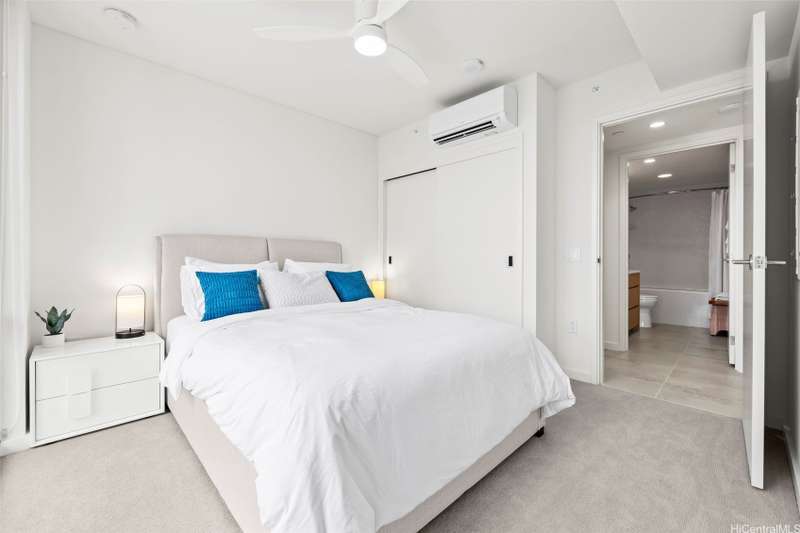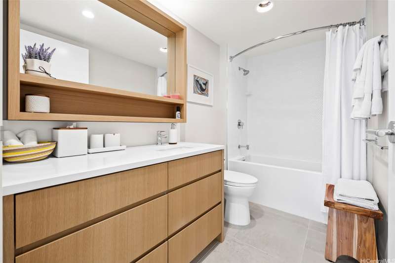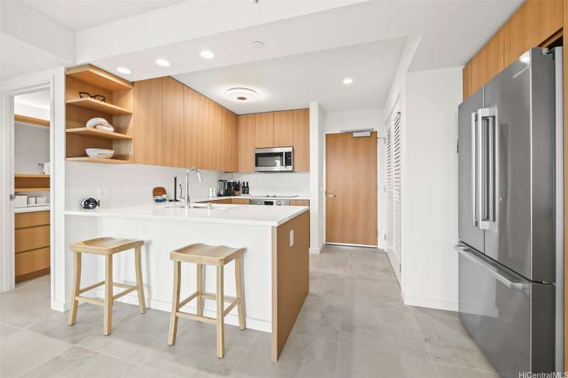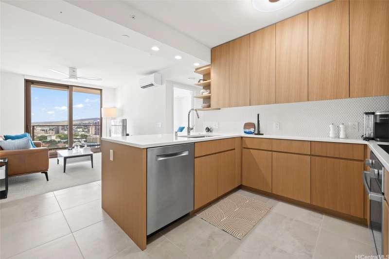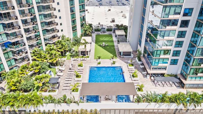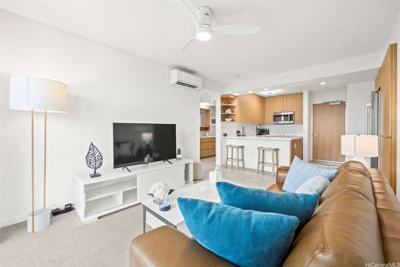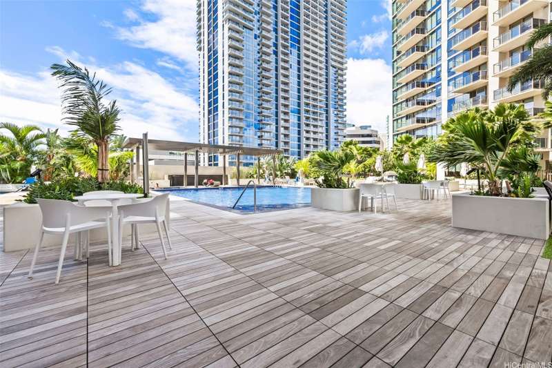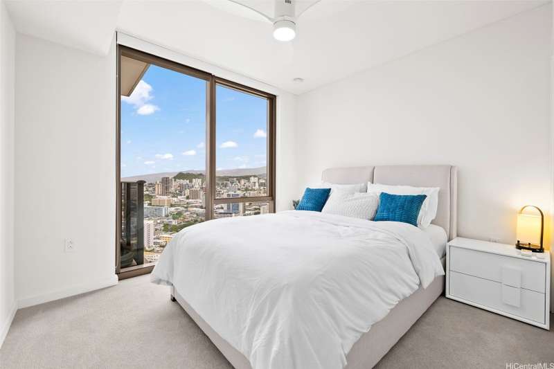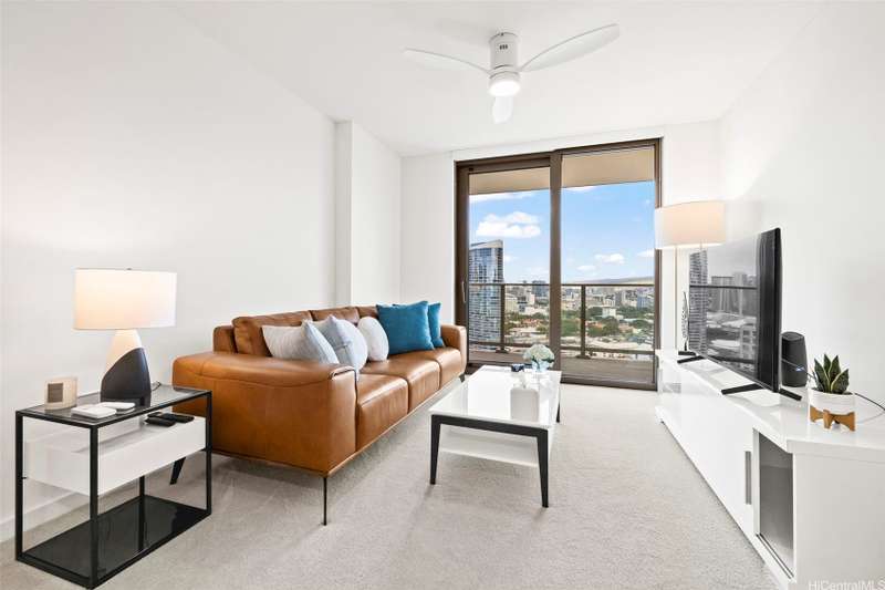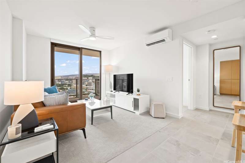 Experience modern urban living in this 31st-floor residence at Sky Ala Moana West. This 1-bedroom, 1-bathroom unit offers picturesque views from its private lanai. The open-concept layout features contemporary finishes, a sleek kitchen with stainless steel appliances, stylish cabinetry, and a comfortable living space. Offered fully furnished along with custom designed bedroom closets. Residents enjoy exclusive access to the Sky Terrace, a 50,000+ sq. ft. amenity deck with a resort-style pool, spa, fitness center, and more. Centrally located in Ala Moana, near world-class shopping, dining, and beaches.