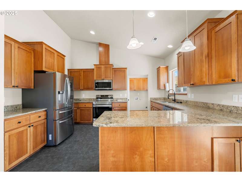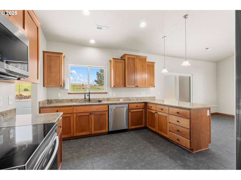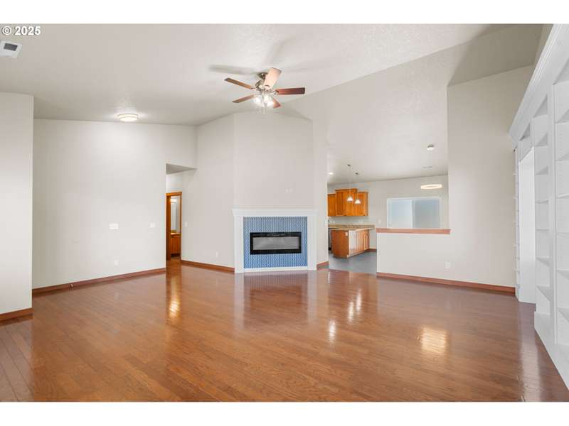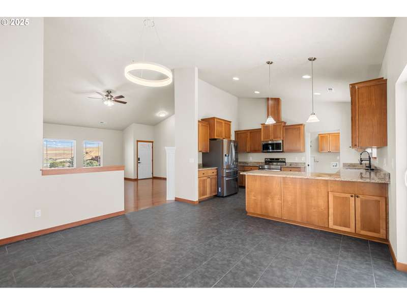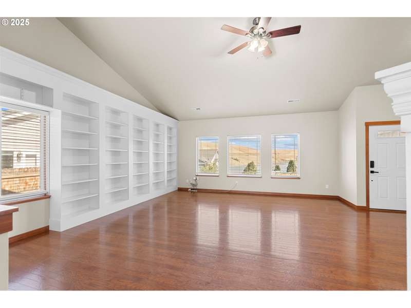 Stunning Custom Built Home overlooking the Heppner Dam and park. Welcome to this beautiful 4-bedroom, 2-bathroom custom-built home in Heppner, Oregon. Built in 2011. This 1,920 sq. ft. residence offers a perfect blend of modern comfort and timeless charm. Step inside to find an open-concept living space featuring vaulted ceilings, a cozy electric fireplace, ceiling fans, a large pantry and hardwood floors complemented by wall-to-wall carpeting in bedrooms. The home has been freshly painted and boasts built-in bookshelves, providing both style and functionality. The chef-inspired kitchen includes stainless steel appliances, granite countertops, and a large pantry ideal for entertaining and everyday living. Enjoy the outdoors on the spacious deck overlooking the scenic Heppner Dam and park area. Take advantage of easy yard maintenance with the timed underground sprinklers keeping the landscaped yard pristine. This property also offers RV parking with a 50-amp electrical hookup with 220V, perfect for recreational vehicles or extra workspace. Additional features include ample storage, not in the flood plain, awnings covering the back patio, new concrete patio with freshly seeded back yard, and thoughtful custom touches throughout. This home is a rare combination of location, comfort, and functionality, ready for you to move in and enjoy the area and beautiful view.