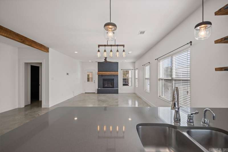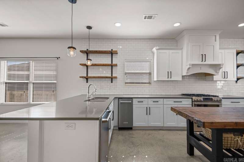 Corner lot location just steps from schools, restaurants, and shopping. Large covered back porch and large fenced in yard. All brick construction featuring main level primary suite and full guest suite. No carpet. Freshly painted. Professional landscaping and sprinkler system. And a 3 car garage!! Quality construction and huge bonus room!!