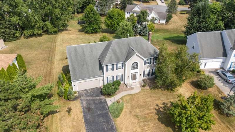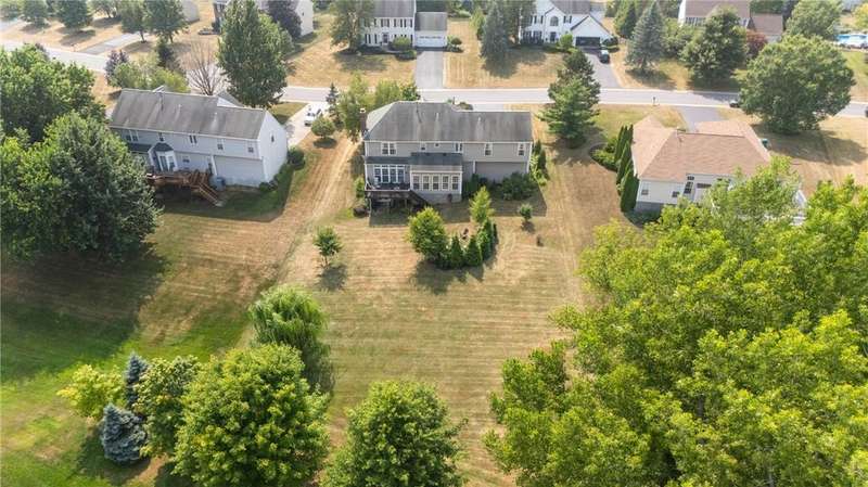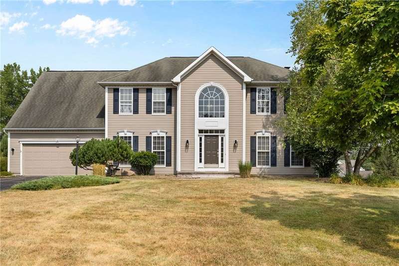 Welcome to your new home in a charming and welcoming neighborhood! This beautiful 3,200 sf Colonial plus the 1200 sf finished walk-out basement gives you over 4400 sf of living space. This home boasts bright, open spaces perfect for every lifestyle! Walk in the 2 story foyer with soaring ceilings and hardwood floors! Cook to your delight in the newly remodeled kitchen! showing off concrete countertops, Subway tile backsplash, New SS oven, hood, farm sink, and cabinet hardware! Fresh paint and updated light fixtures can be seen throughout! The expansive primary bedroom suite features double California Closets for ample storage and a spa like bath that features a jacuzzi tub! 3 more huge bedrooms and the main bath finish the upstairs! The meticulously finished basement offers a wet bar, gas fireplace, the 3rd full bath, 5th bedroom and plenty of built-ins, along with a delightful dollhouse nook! Enjoy those sunny days on the expansive deck and savor the view of the lush yard and landscaping! Check out the new ceramic coated garage floor. All this, Plus the benefits of Fairport Electric!