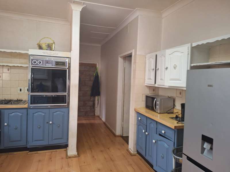 The main house features three spacious bedrooms, each offering generous cupboard space. It includes a fully fitted shared bathroom and a separate guest toilet for added convenience. The open-plan living area seamlessly integrates the lounge and dining space with a large, enclosed patio and backyard. The country-style kitchen provides ample storage and workspace, accommodates a double-door fridge, includes a gas stove, and has a separate laundry room. For parking, the front carport can accommodate two vehicles. Additional features include a borehole water supply and an automated gate for security. The property also includes additional structures, such as a double garage located at the back, with a separate section suitable for a potential vegetable and herb garden. There are two flatlets on the premises. The first flatlet features a spacious open-plan lounge and kitchen area, a large main bedroom, a guest bedroom, and a shared bathroom with a shower, basin, and toilet. The second flatlet is a bachelor unit with its own toilet and basin, with the potential to add a shower. An on-site ablution facility is available for garden services. This property offers excellent opportunities, including the option to retain current tenants who are interested in continuing to rent. It is ideal for extended families wishing to live close together and has potential for generating rental income from the flatlets. Offering versatility and ample space for modifications, this property is ready to adapt to your needs. Call today to arrange a viewing!